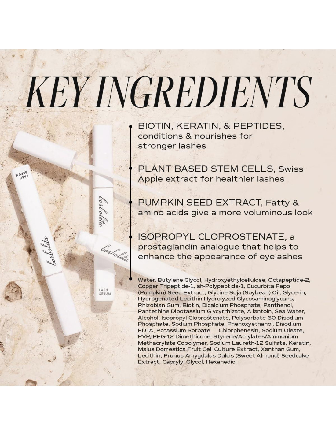 - LIBRE DE CRUELDAD: Nuestro suero de pestañas es libre de crueldad y nunca ha sido probado en animales. En Borboleta, estamos comprometidos con prácticas éticas, asegurando que nuestros productos se alineen con valores compasivos