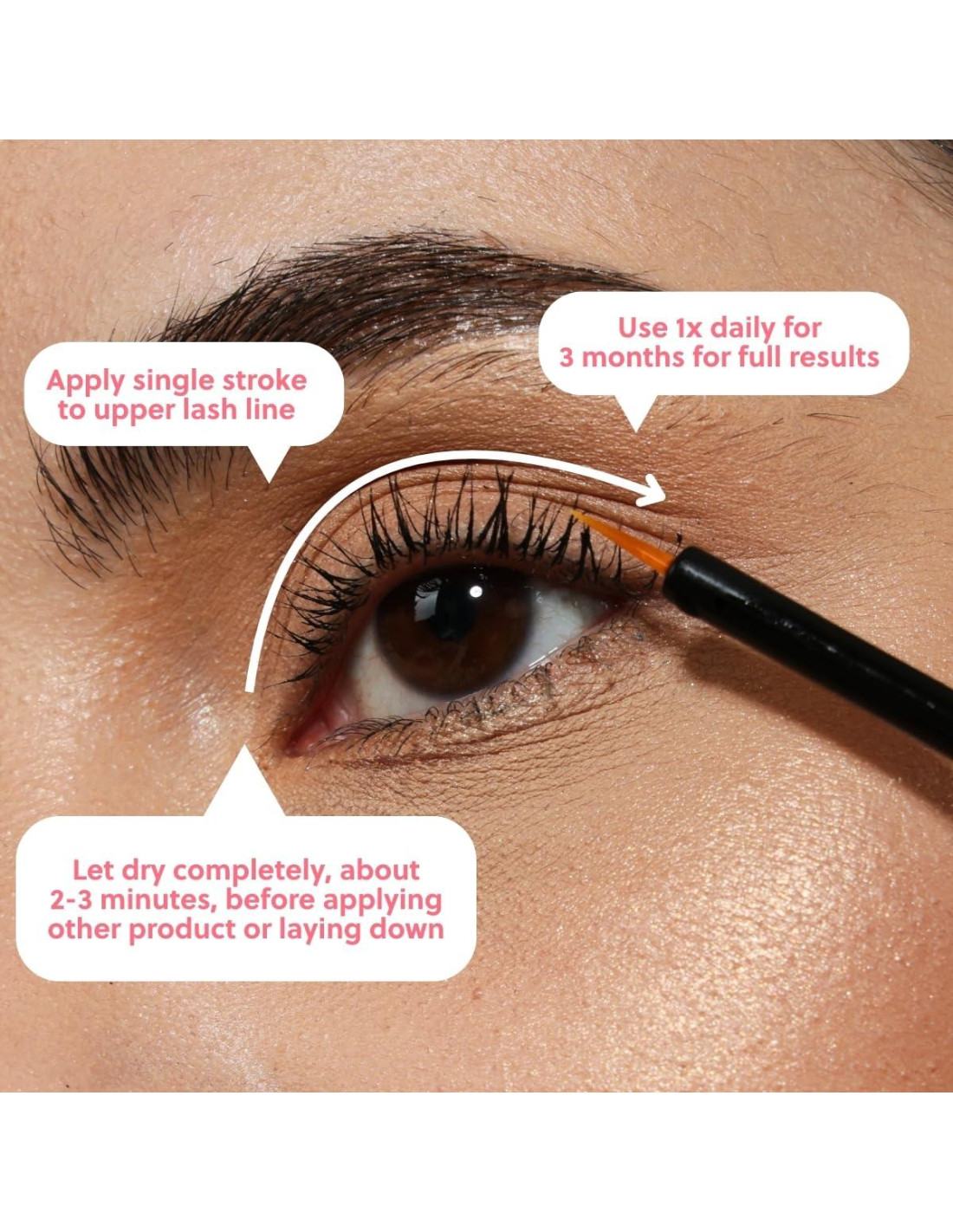 - Una adición simple a tu régimen de belleza con un aplicador de pestañas de punta fina para precisión; solo se necesita un deslizamiento desde la esquina interna del ojo hasta la esquina externa 2 veces al día, y la fórmula revive y fortalece los folículos pilosos.