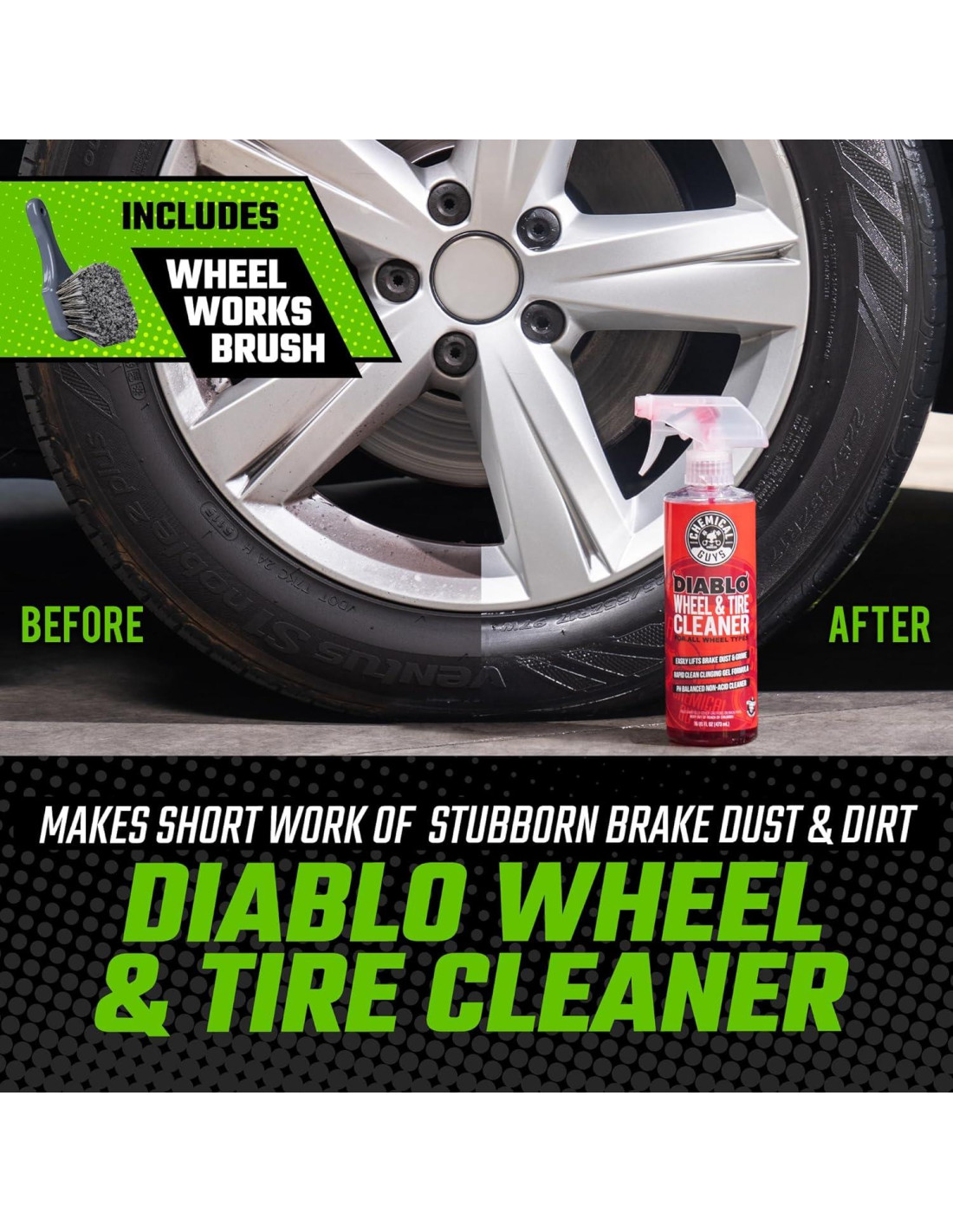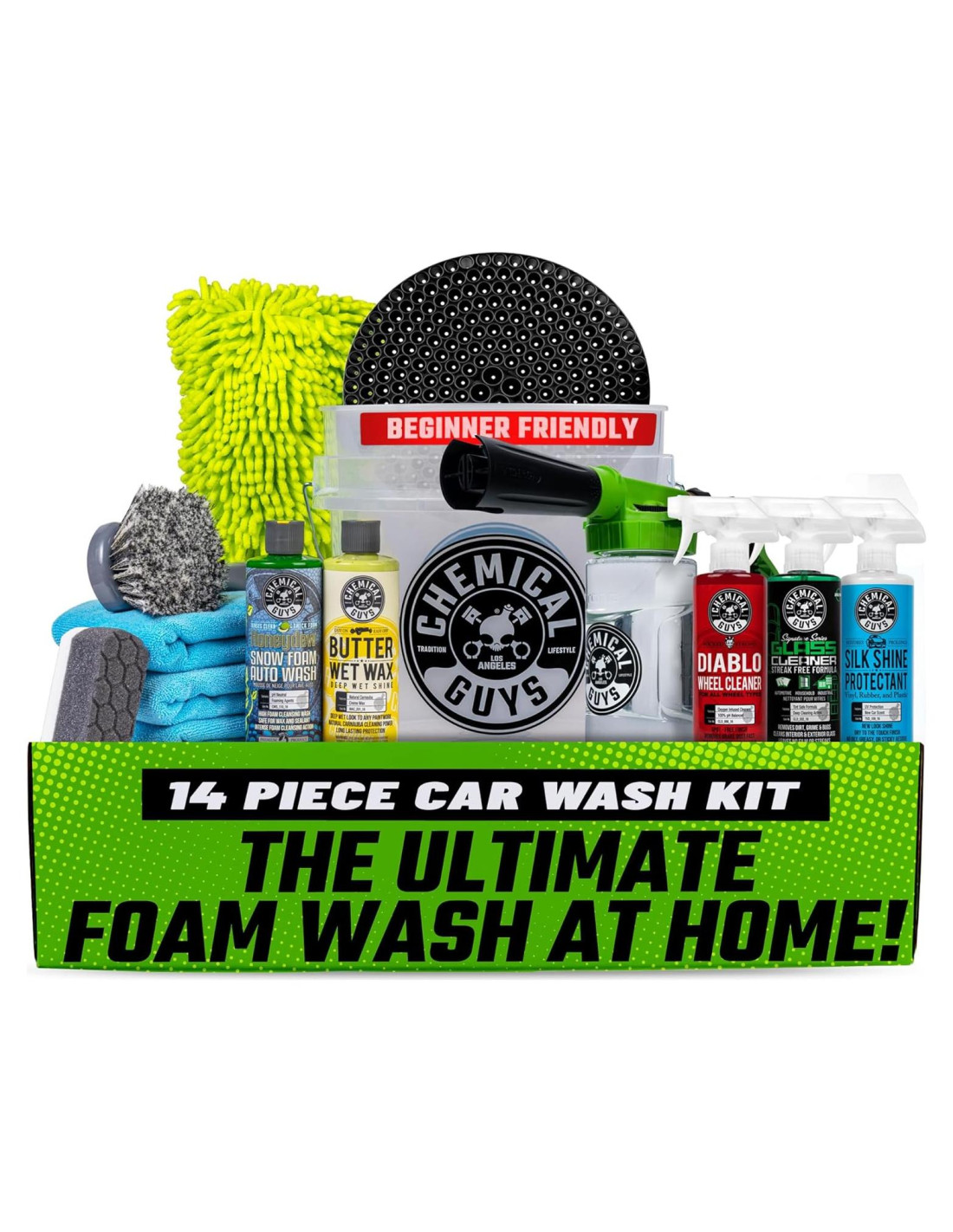 Este kit es la colección definitiva de suministros para lavado de autos; es el regalo perfecto para cualquier aficionado a los autos, entusiasta de camiones o fanático de autos clásicos; contiene todo lo necesario para limpiar y mantener un hermoso brillo en cualquier auto o camión. Desde lavados de espuma hasta limpieza profunda de ruedas y acabados de cera brillante, este kit de 14 piezas incluye cada esencial para lavar, brillar y proteger tu vehículo, perfecto para cualquier rutina de detallado. Conecta el Blaster de Espuma a cualquier manguera de jardín y rocía espuma espesa al instante. Levanta la suciedad y la mugre para un lavado más seguro y efectivo, sin necesidad de lavadora a presión. Elimina el polvo de frenos y la mugre de la carretera con el Limpiador de Ruedas Diablo y el cepillo para ruedas. Diseñado para limpiar profundamente en radios, llantas y aros con facilidad y poder de brillo. Obtén un acabado húmedo y brillante usando Cera Húmeda Butter, solo aplica y pule. Mejora el color, la profundidad y el brillo mientras ayuda a proteger tu pintura entre lavados. Equipado con herramientas profesionales y limpiadores premium, este kit todo en uno es el regalo perfecto para amantes de autos, propietarios de camiones o cualquier persona que se enorgullezca de tener un vehículo limpio y brillante.