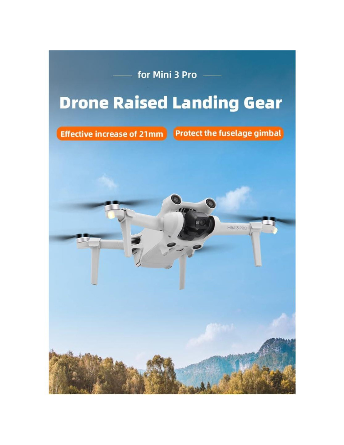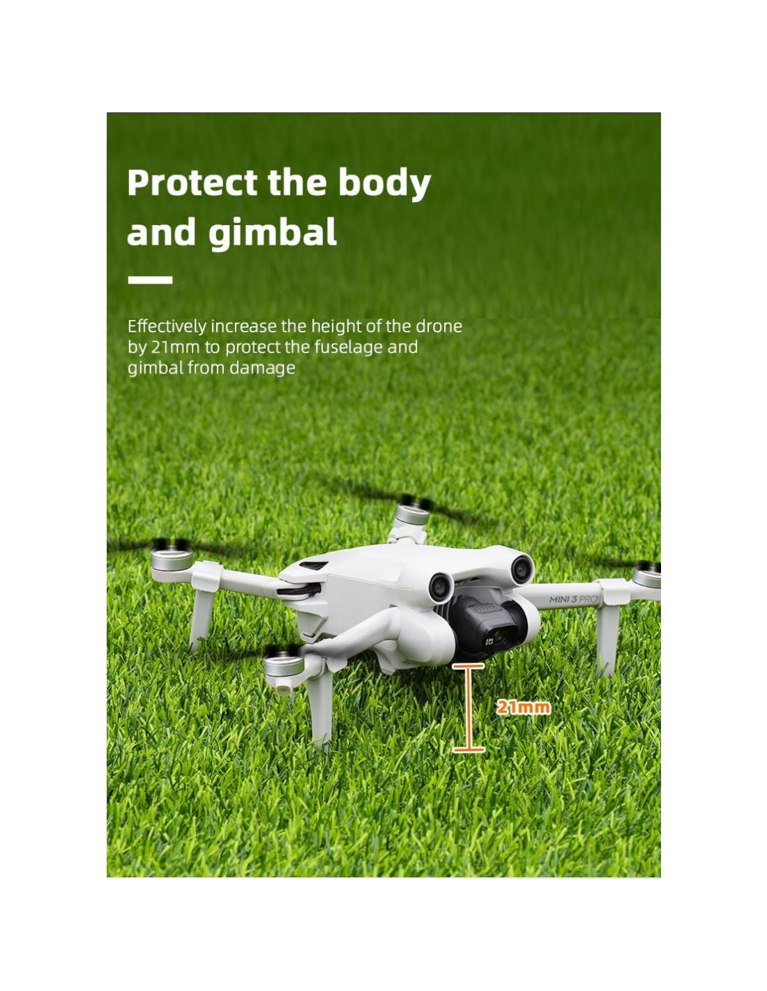- Protege el cuerpo y el cardán, aumenta efectivamente la altura del dron en 21 mm