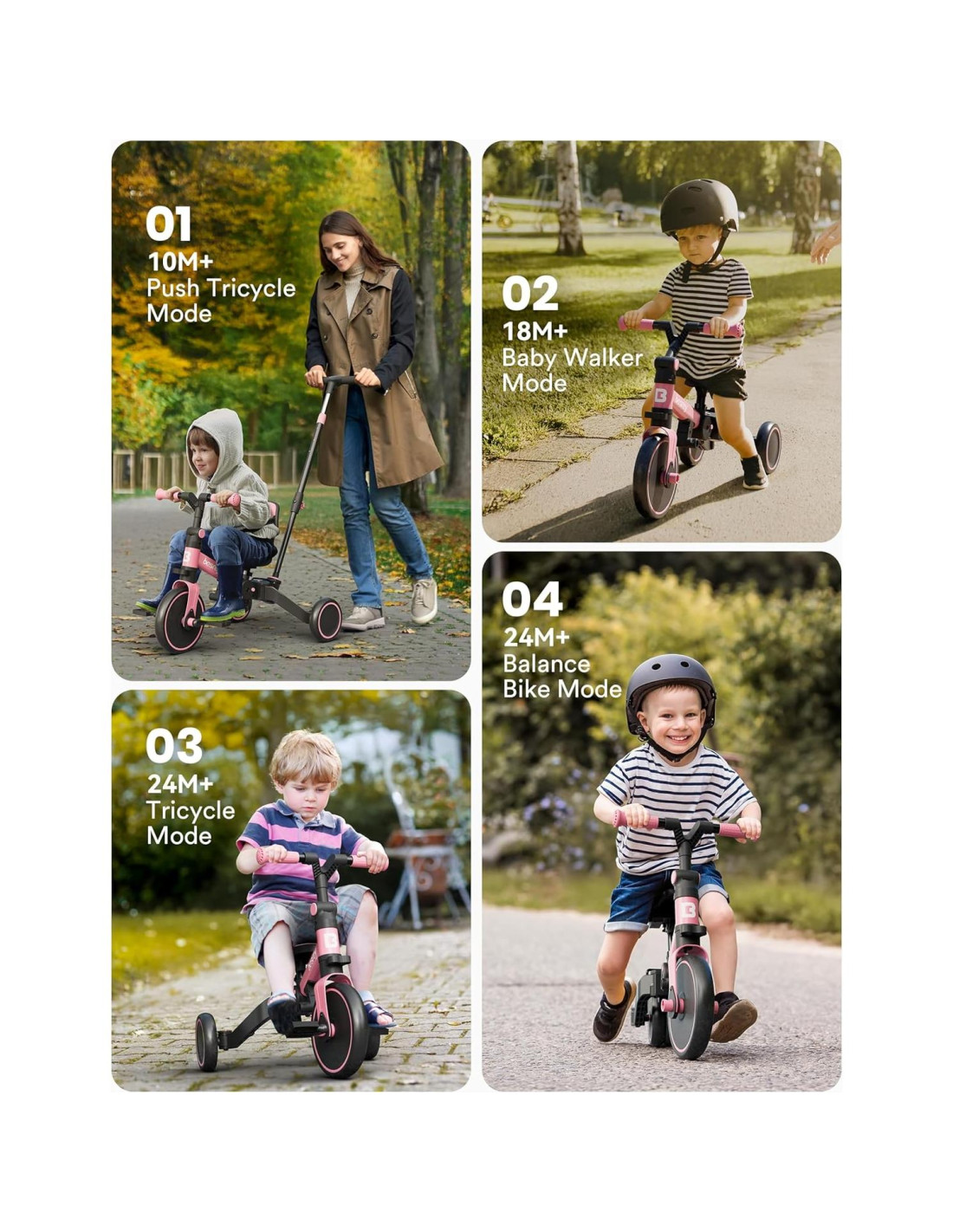 - Modos 5 en 1: Transiciones fácilmente entre modos de plegado, bicicleta de equilibrio, deslizamiento, triciclo de empuje y modos de triciclo, acomodando cada etapa del crecimiento de su hijo.