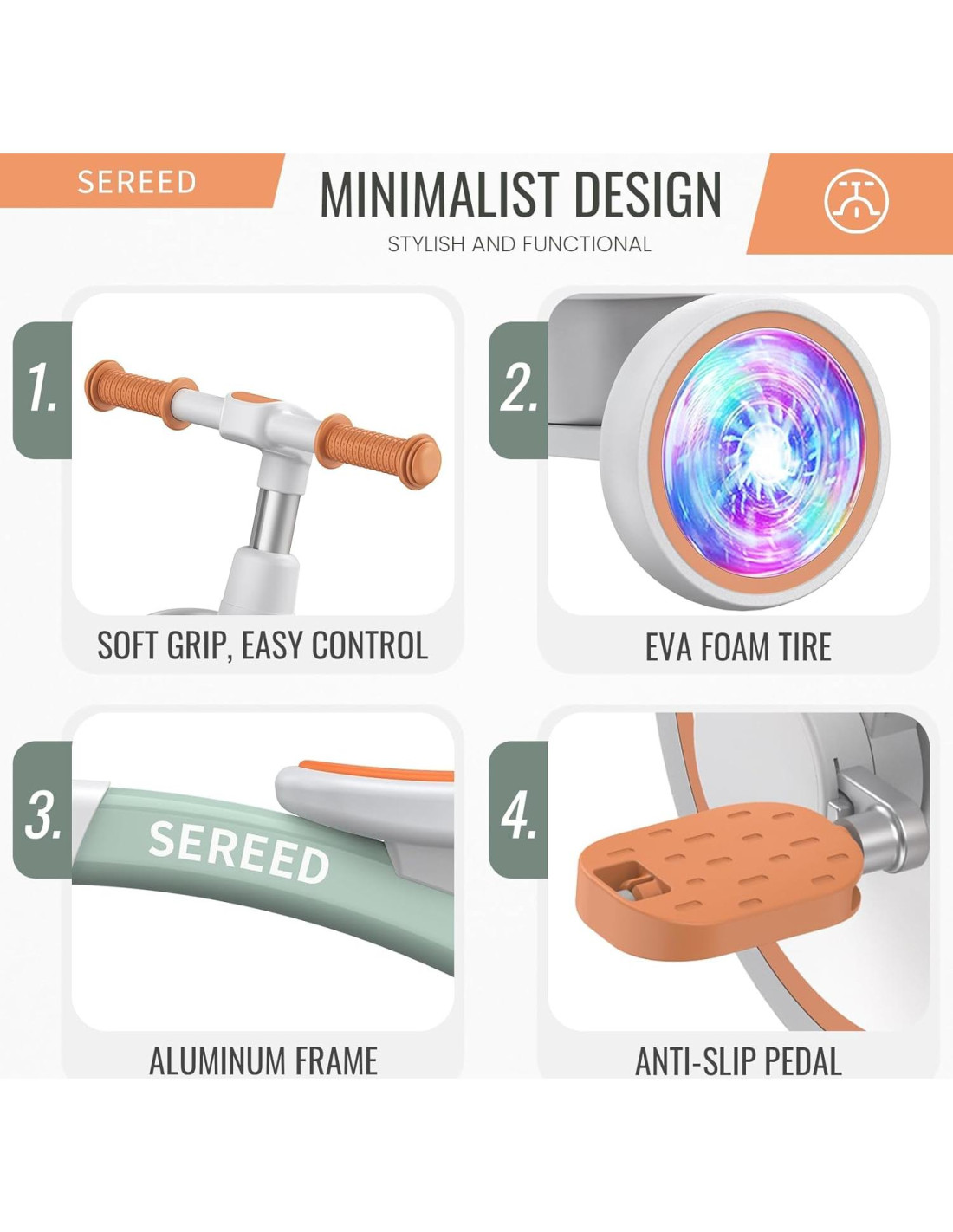 - PASEO SUAVE: El triciclo SEREED cuenta con rodamientos de precisión y un diseño único de pedales, facilitando y suavizando el paseo para los más pequeños mientras exploran su mundo.