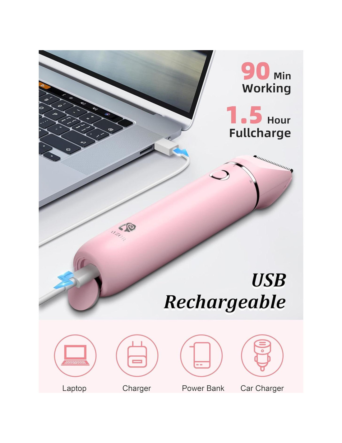 - [Recargable y Portátil] Esta recortadora de bikini viene con un conveniente cable de carga USB, proporcionando una carga rápida y fácil. Con solo 1.5 horas de tiempo de carga, disfruta de hasta 90 minutos de uso inalámbrico. La bolsa de transporte adicional incluida la hace perfecta para viajar. Higiene y conveniencia en movimiento.