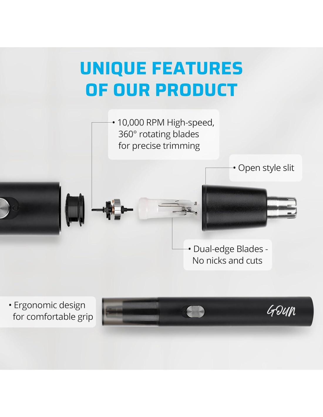 - Experiencia de Aseo Precisa y Cómoda recorte suave y sin dolor con este recortador de vello nasal para hombres, que cuenta con cuchillas de acero inoxidable de doble filo y un sistema rotatorio de 360 . Apunta fácilmente a los vellos no deseados de la nariz, las orejas y las cejas sin tirar ni jalar, asegurando resultados de calidad cada vez.