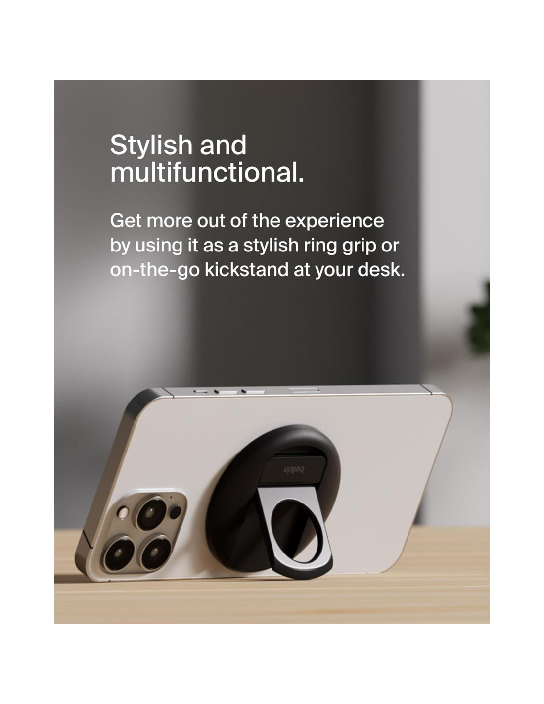 - DISEÑO MULTIFUNCIONAL: Saca el máximo provecho de este accesorio para iPhone fácil de usar: este soporte de cámara para iPhone también funciona como un elegante anillo magnético para un agarre fuerte en movimiento o un conveniente soporte en tu escritorio para chatear, ver, desplazarte o crear.