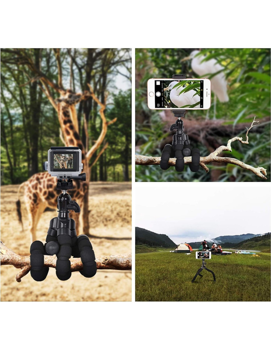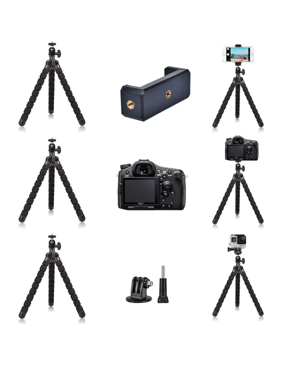 - Flexible y Duradero: este pequeño trípode no es de tipo diminuto, mide aproximadamente 12 pulgadas (30,48 cm) de alto, puedes usarlo como un palo de selfie corto, o agarre de mano, o envolverlo en cercas, palos, manillares de bicicleta... para tomar fotos desde ángulos que no son posibles al usar un trípode normal.
