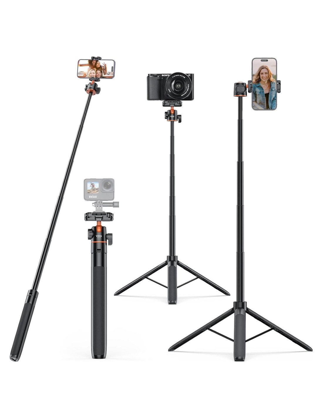 Puedes usar nuestro trípode para iphone en cámaras Canon Nikon Sony/GoPro/webcam/cualquier dispositivo con tuerca de 1/4 de pulgada. La parte interna del clip para teléfono tiene una almohadilla de goma, que puede proteger bien tu teléfono y hacer que tu teléfono sea más estable. Puedes tirar hacia arriba. Se puede extender de 2.7 a 3.5 pulgadas (6.86 a 8.89 cm). Ampliamente compatible con la mayoría de los smartphones en el mercado. Nuestro mango de trípode para teléfono está cuidadosamente diseñado con una textura antideslizante para una mejor sensación, que no se caerá incluso al hacer deportes extremos. Perfecto para selfies, transmisiones en vivo, grabación de video, Vlog, viajes y reuniones familiares. Cuando no está en uso, se pliega a 11.3 pulgadas (28.7 cm) de altura y pesa solo 385 gramos, lo que lo convierte en un ajuste perfecto en tu maleta o mochila. El trípode de palo selfie UURIG hace tu vida más conveniente.