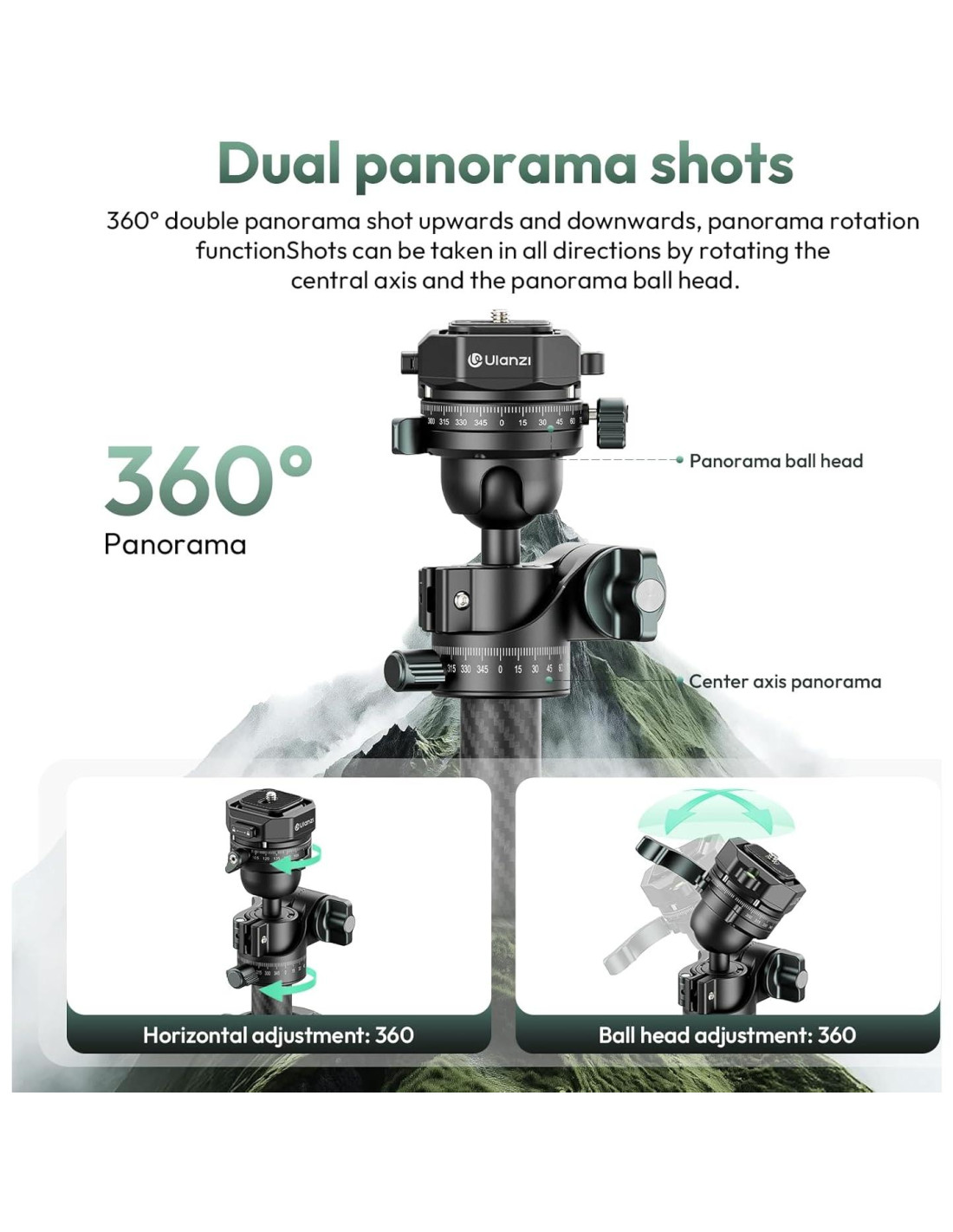 - DISEÑO PROFESIONAL: El trípode de fibra de carbono JJ05 cuenta con rotación panorámica de 360 con cabezal de bola y columna central, además de capacidad de cambio vertical de 90 para ángulos de disparo versátiles como trípode de cámara en altura