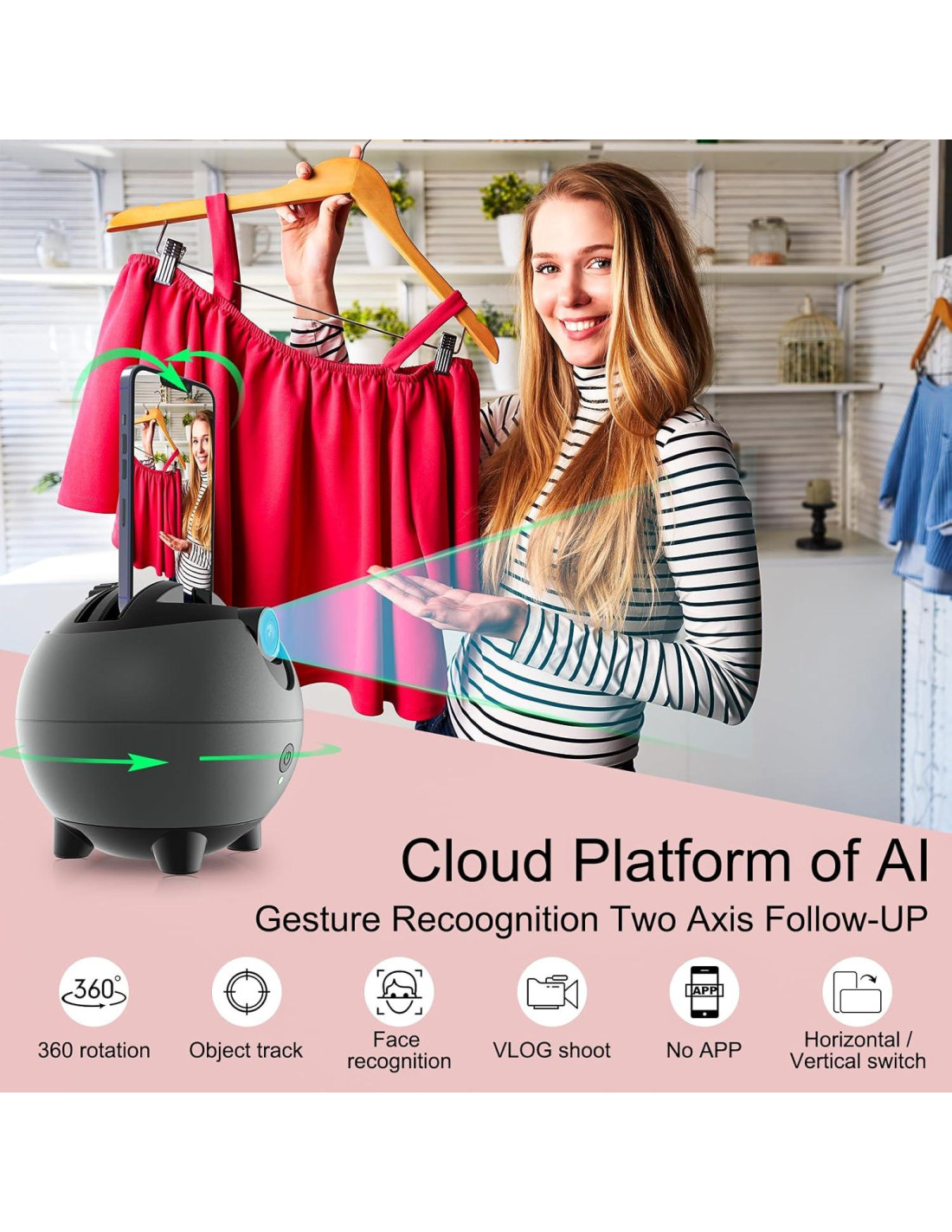 - [Rotación de 360 y ángulo de seguimiento automático de 26 hacia arriba y hacia abajo] El trípode de seguimiento facial automático con rotación de 360 proporciona un amplio rango de seguimiento para asegurar un seguimiento efectivo y preciso. Con ángulos de seguimiento horizontal y vertical de 360 y 26 respectivamente, este trípode de seguimiento cubre casi todos los ángulos de grabación. Con una rosca estándar de 1/4" (6.35 mm) en la parte inferior, puedes montar este soporte de teléfono con seguimiento automático de 360 en un trípode para una grabación más flexible, como al grabar videos de tutoriales de baile y transmisiones en vivo.