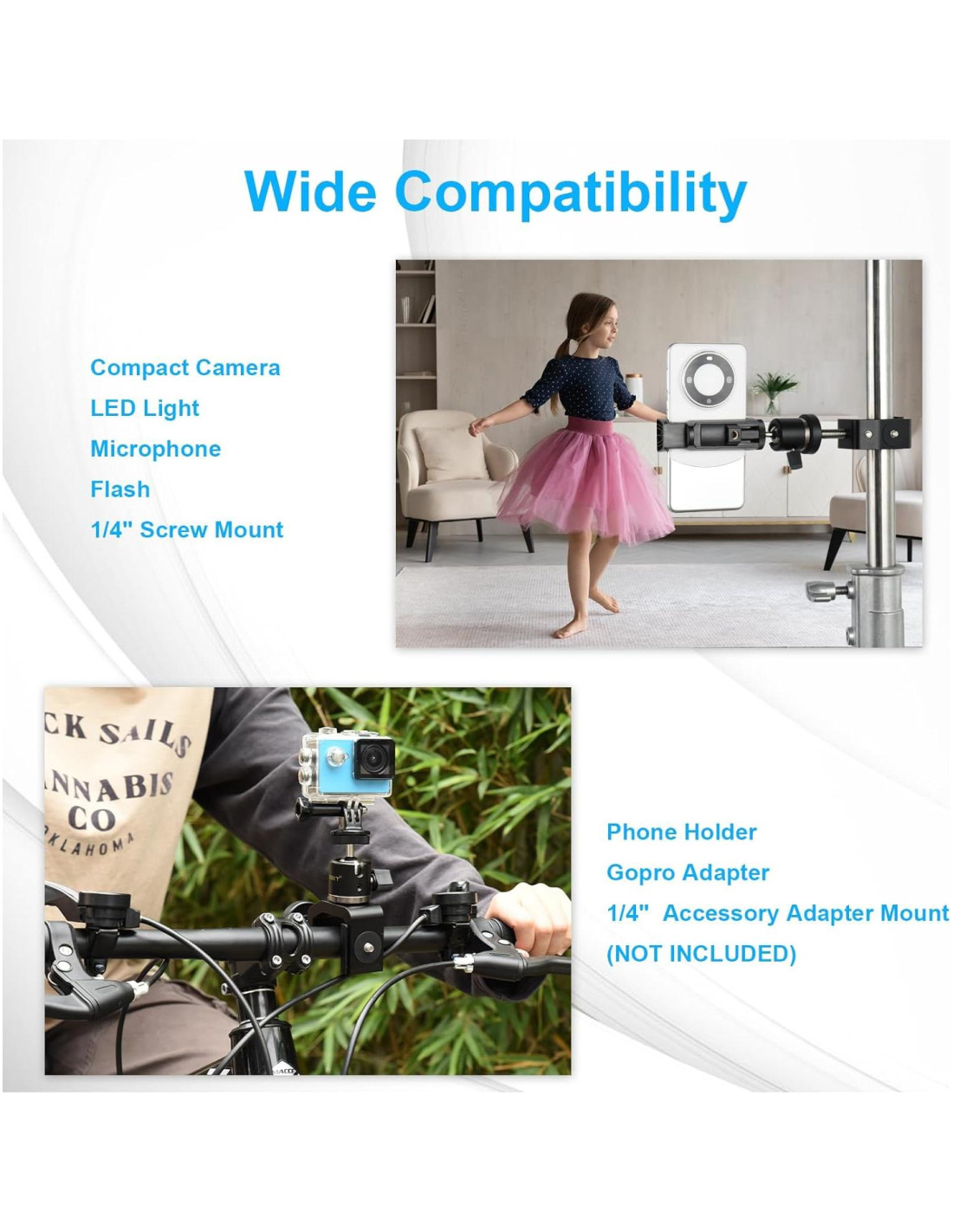 - Lo que obtienes: Nuestro soporte de cámara está equipado con una almohadilla de goma antideslizante, evita daños al escritorio de la cámara por fricción, previene que tu aplicación se deslice y raye. También este conjunto incluye 1 cabezal de bola mini.