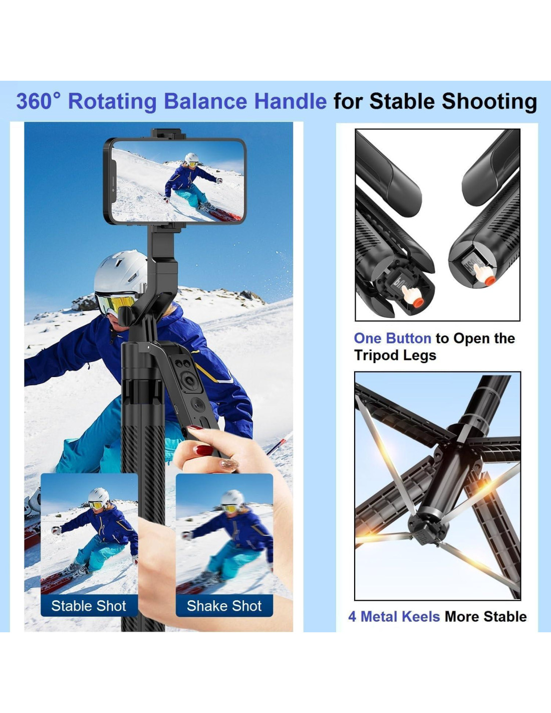 - Trípode de 360 para Teléfono Rotativo con Control Remoto: Logra disparos panorámicos de 360, disparos hacia arriba y hacia abajo de 270, el trípode de seguimiento para teléfono y cámara puede ajustar varios ángulos para disparos horizontales y verticales, permitiéndote capturar las tomas perfectas. Y el mango de equilibrio puede rotar 360 horizontalmente para hacerlo como un estabilizador de teléfono para disparos estables.