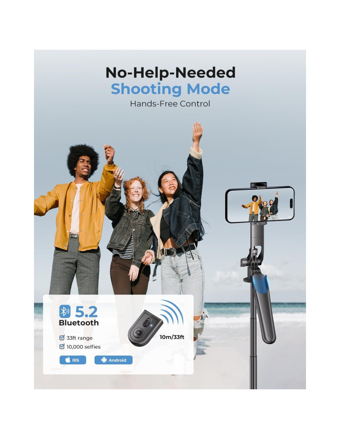 - Diseño Todo-en-Uno: Combina palo de selfie y trípode para una fácil captura de fotos en solitario. Compacto y portátil, perfecto para creadores de contenido