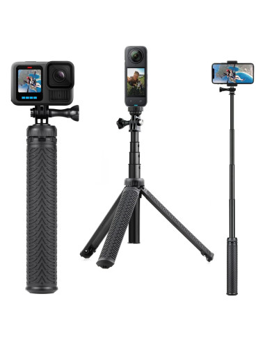 Cuando se usa con el trípode incluido y el adaptador de montaje roscado de 1/4'', este trípode de palo extensible funciona con la Insta360 x2 x3, Go3 y otras cámaras digitales con agujeros roscados de 1/4''.