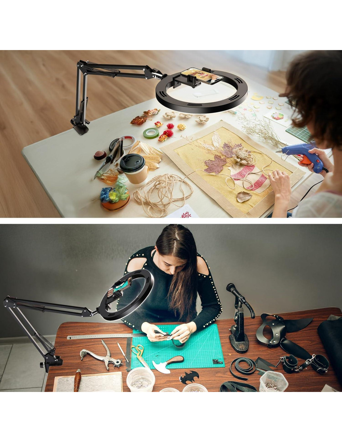- Flexibilidad Definitiva para Cualquier Ángulo: Equipado con un brazo ajustable, esta luz de anillo para escritorio ofrece posicionamiento versátil para cualquier configuración. La luz de anillo se puede ajustar rápidamente a cualquier ángulo ideal en menos de 1 segundo, asegurando la máxima flexibilidad para la creación de contenido, grabaciones de video y más. El soporte universal roscado de 1/4" es compatible con dispositivos con agujeros de tornillo coincidentes, mientras que la abrazadera de mesa se extiende hasta 5.8 centímetros para acomodar la mayoría de los grosores de mesa.