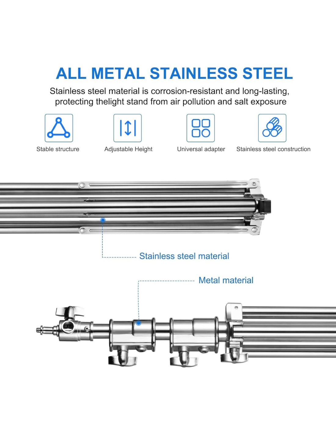 - Soporte de Alta Resistencia de Acero Inoxidable El Soporte de Luz FOTOLS está hecho de acero inoxidable resistente. Resiste todas las condiciones climáticas y no se oxidará ni romperá con el tiempo. Son mucho más sólidos que los baratos de aluminio y no se vuelcan con luces más pesadas sobre ellos. Son una gran mejora para facilitar tu trabajo.