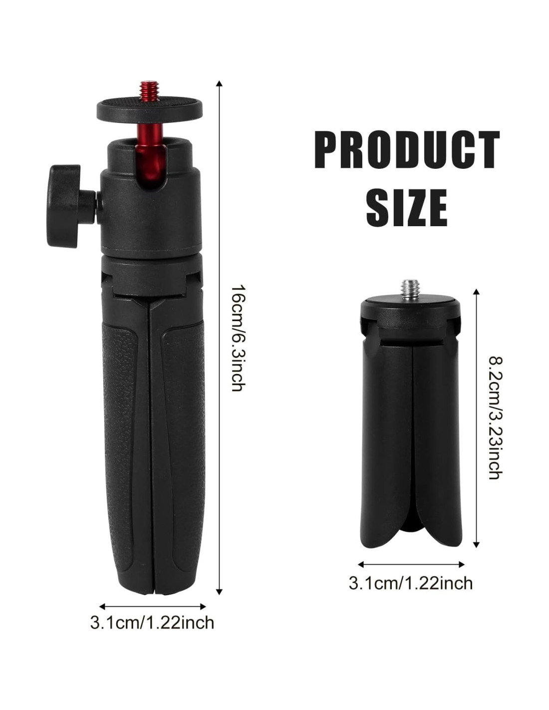 - Información de Tamaño: El trípode mini mide aproximadamente 8.2x3.1cm/3.23x1.22in (8.2x3.1cm), 10g/0.35oz (0.01kg) de peso. El trípode de bastón selfie mide aproximadamente 16-31x3.1cm/6.3-12.2x1.22in (16-31x3.1cm), 100g/3.5oz (0.1kg) de peso. Ambos tienen una interfaz roscada de 1/4in/0.64cm.