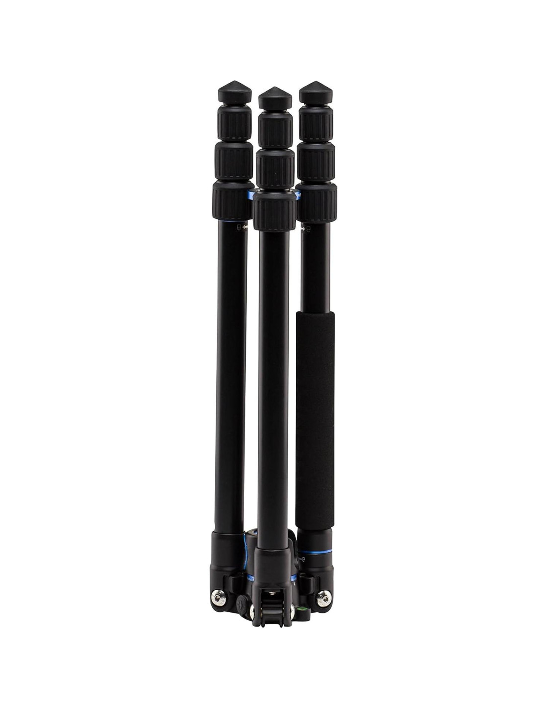 - Equipado con pies de goma intercambiables atornillables y pies con puntas de acero inoxidable para mayor estabilidad. Además, una pierna removible se puede combinar con la columna central para crear un monopod de tamaño completo.