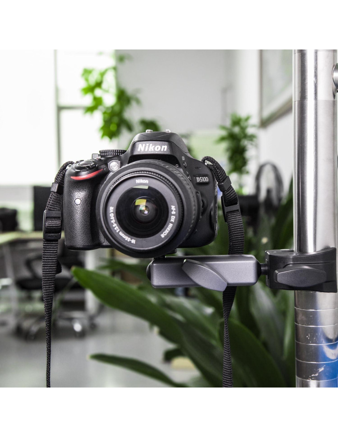 - [Buen ayudante] Diseñado para grabación de video en estudio, este soporte de abrazadera para cámara de 360 proporciona a los fotógrafos una solución de grabación conveniente y eficiente con su excelente estabilidad, flexibilidad y capacidad de carga. La distancia máxima de apertura de la abrazadera inferior es de 2.0 inches (5 cm); La carga máxima es de 7.7 lbs (3.5 kg).