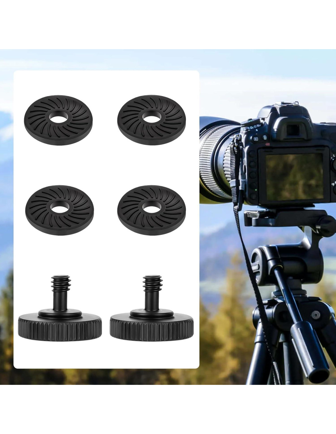 - Contenido del paquete: nuestro paquete incluye dos piezas de tornillos de pulgar y 4 piezas de almohadillas de goma, que son compactas y fáciles de llevar al aire libre.
