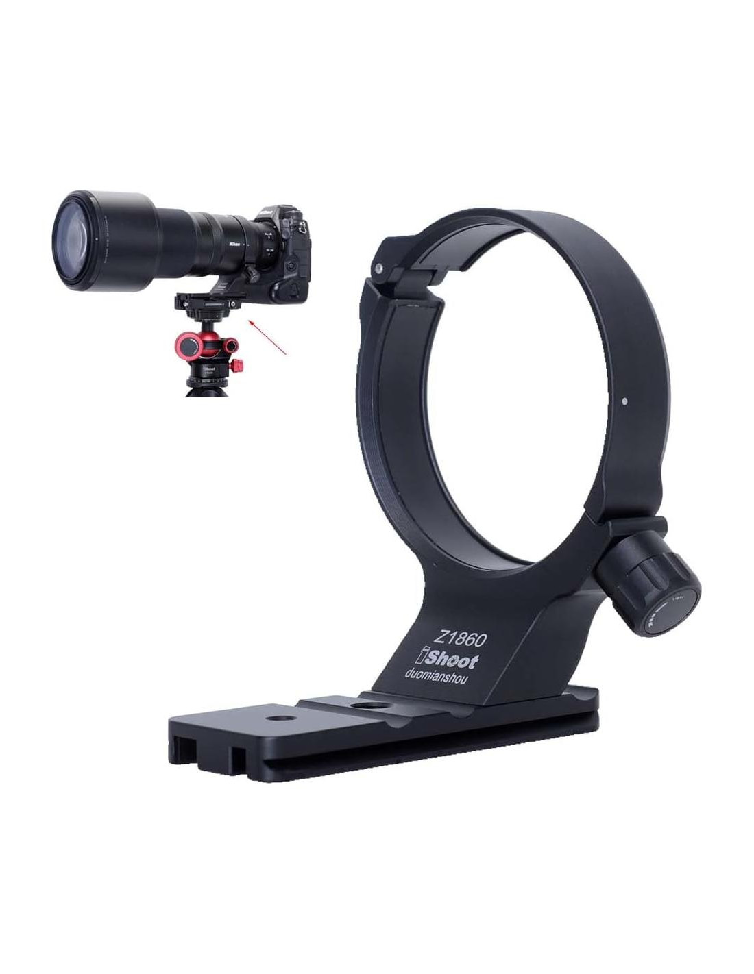 Anillo de Montaje en Trípode iShoot IS-Z1860 --- Soporte para Toma Vertical Compatible con Nikon Z 180-600mm F5.6-6.3 VR La base es de 39mm Placa de Liberación Rápida Ajuste Arca Característica Compatible con Cabezal de Trípode RRS / ARCA-SWISS y Estabilizador Ajuste Arca Características Principales: 1. El anillo de trípode está firmemente combinado con la lente, y no debe haber pegatinas en la posición de instalación. Si las hay, deben ser removidas, de lo contrario afectará la instalación; 2. El collar de lente IS-Z1860 se puede combinar con el convertidor de montaje de abrazadera IS-3950PRO (se vende por separado), que se puede usar para cabezales fluidos y estabilizadores con estructura Manfrotto 50; 3. El anillo de trípode está hecho de Aluminio de Aviación, mecanizado con precisión CNC, diseño de reducción de peso hueco, pulido y acabado anodizado en superficie. La apariencia y la exquisita mano de obra son mucho mejores que los productos similares fabricados por molde. Compatible con: Lente Nikon Nikkor Z 180-600mm F5.6-6.3 VR NO compatible con ninguna otra lente. Consejos: No debe haber pegatinas en la posición de instalación de la lente. Si las hay, deben ser removidas, de lo contrario, la instalación se verá afectada. El paquete incluye: 1 x Anillo de Montaje en Trípode iShoot IS-Z1860 Compatible con Lente Nikon Z 180-600mm F5.6-6.3 VR (Nota: Los otros artículos en las fotos no listados aquí son solo para ilustrar, no incluidos)