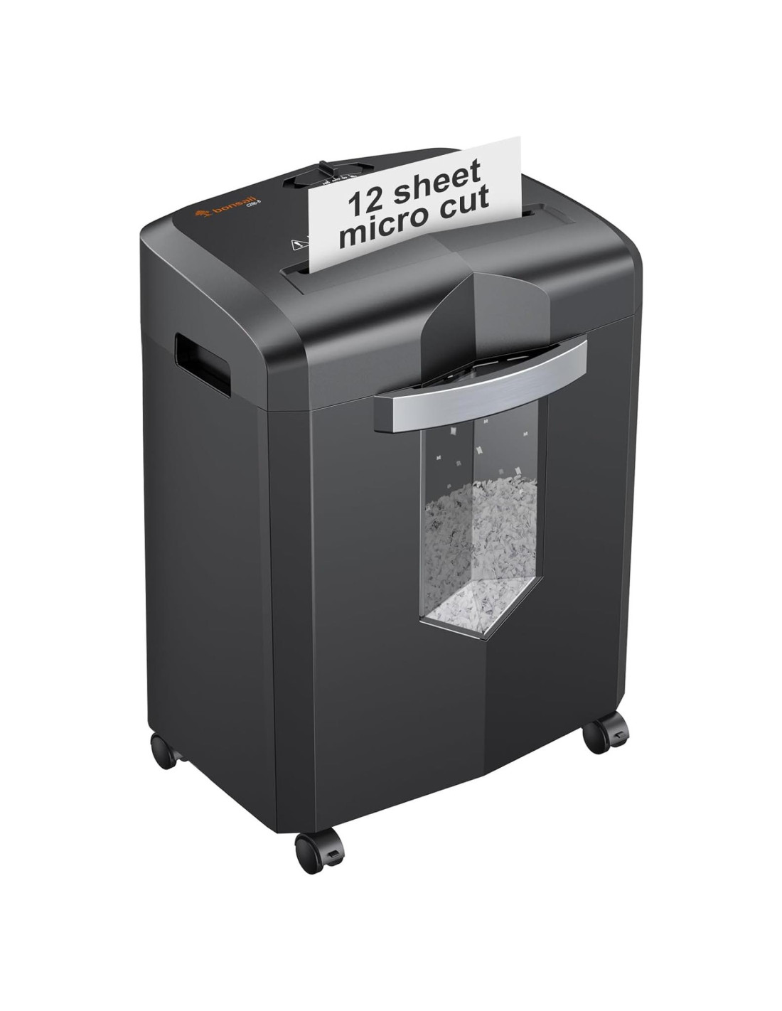 - 60 Minutos y Trituradora de 12 Hojas Usando un sistema de enfriamiento avanzado y tecnología de corte patentada, la trituradora de papel puede funcionar continuamente hasta 60 minutos con un ciclo de enfriamiento de 20 minutos, triturar 12 hojas cada vez, con un total de hasta 3900 hojas de papel, y también triturar tarjetas de crédito, grapas, clips de papel y CDs.
