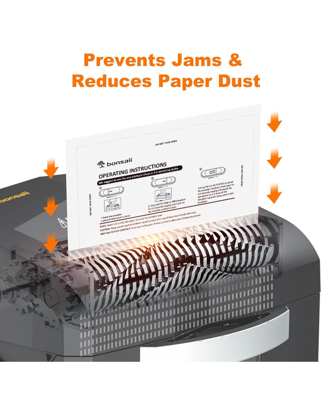 - Hojas de Lubricante: Las hojas de lubricante para trituradoras de papel afilan, limpian y lubrican las cuchillas de la trituradora para un rendimiento óptimo de la trituradora. Ayuda a prevenir atascos de papel; reduce el polvo estático y la acumulación para una eficiencia optimizada.
