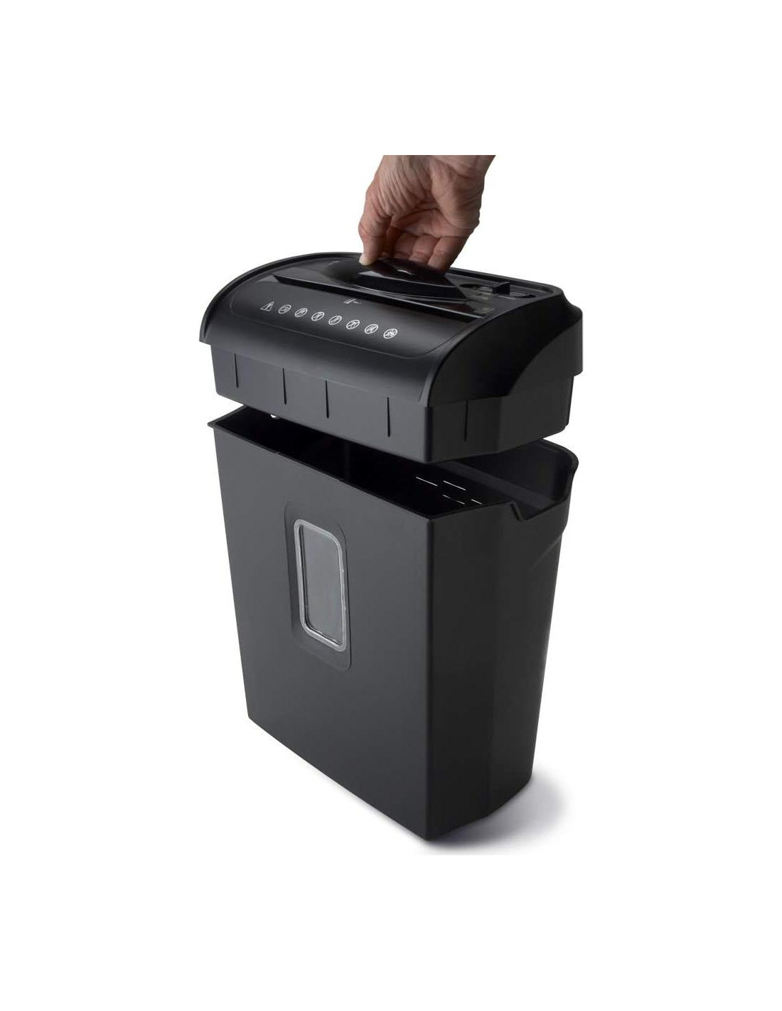 - Micro-Corte de Alta Seguridad con capacidad para 6 hojas destruye tarjetas de crédito, grapas y clips de papel pequeños