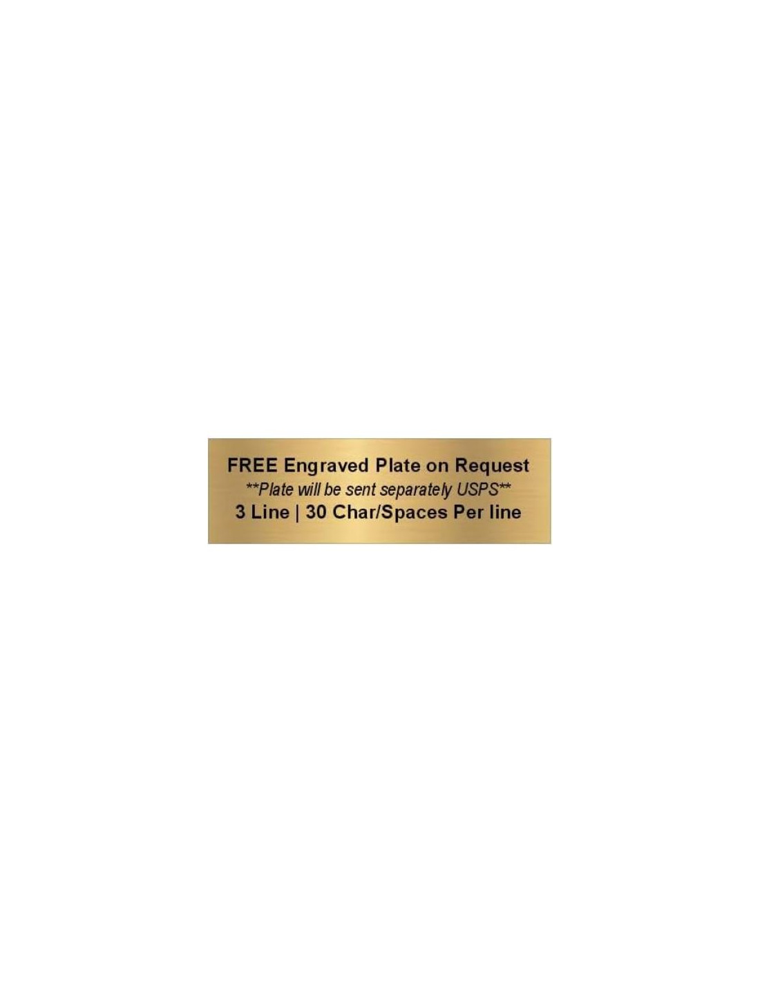 - DETALLES DE GRABADO: 3 líneas de grabado; 30 caracteres / espacios por línea. Todas las líneas están centradas en la placa a menos que se solicite lo contrario y diseñadas individualmente para un impacto máximo.