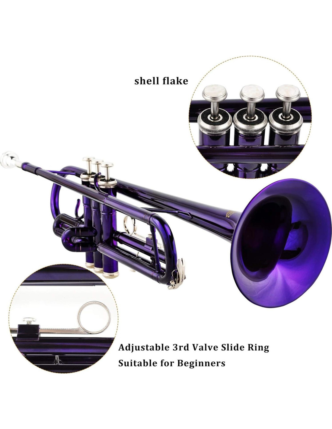 - PROMUEVE UN RÁPIDO DESARROLLO MUSICAL La combinación de construcción de válvula de dos piezas conecta con precisión cada tubería. Válvulas suaves y botones cómodos, montura de pulgar deslizante de la 1 válvula, bloqueo ajustable de la 3 válvula proporciona un sonido amplio con una respuesta rápida y una gran retroalimentación al trompetista.