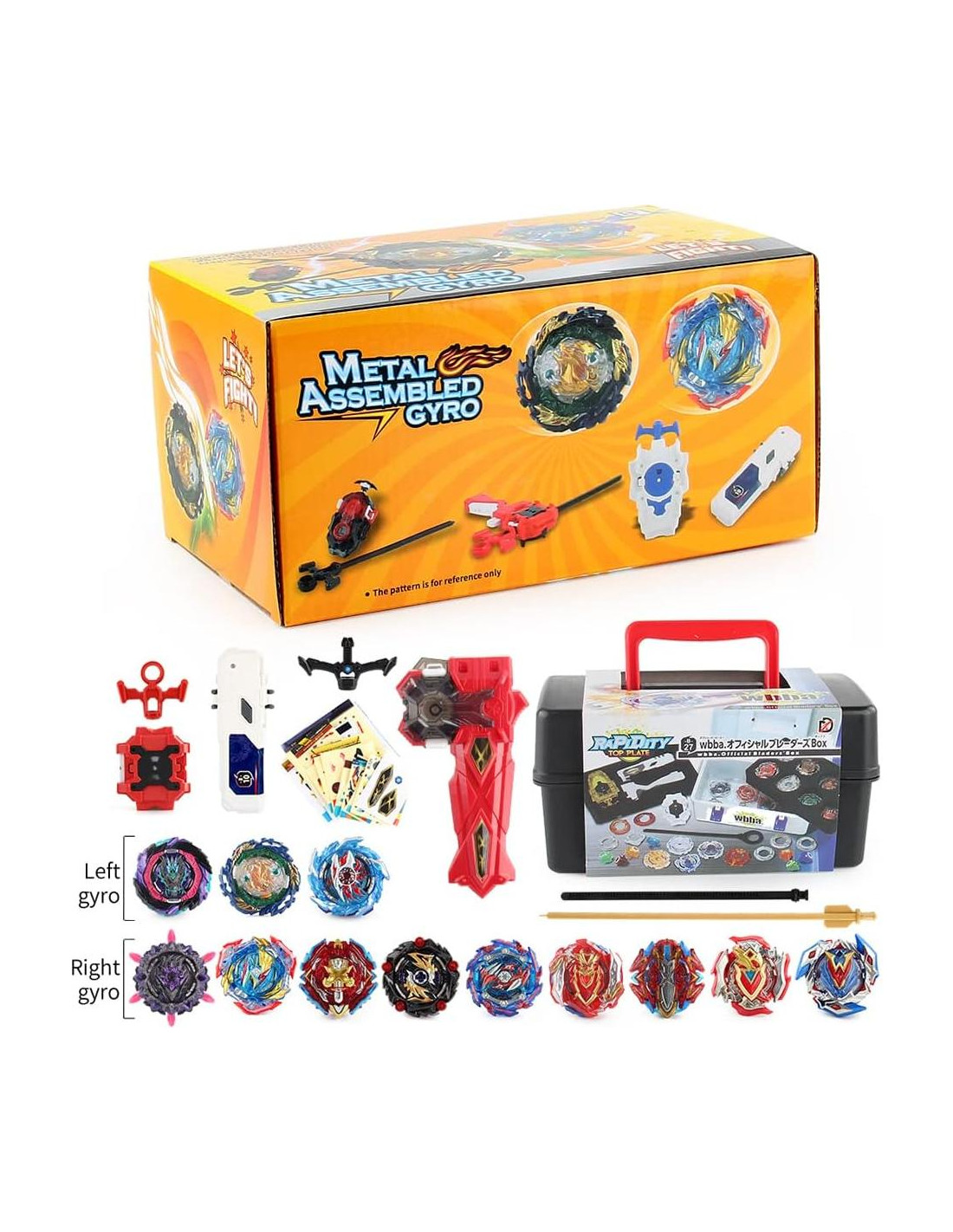 - Este conjunto de tops de batalla viene con 12 tops burst y 3 lanzadores mejorados, lo que permite a los niños tener más opciones para jugar. También pueden compartir el juguete con amigos, lo que promueve la interacción entre ellos. Es una gran idea de regalo para niños de 6 años o más.