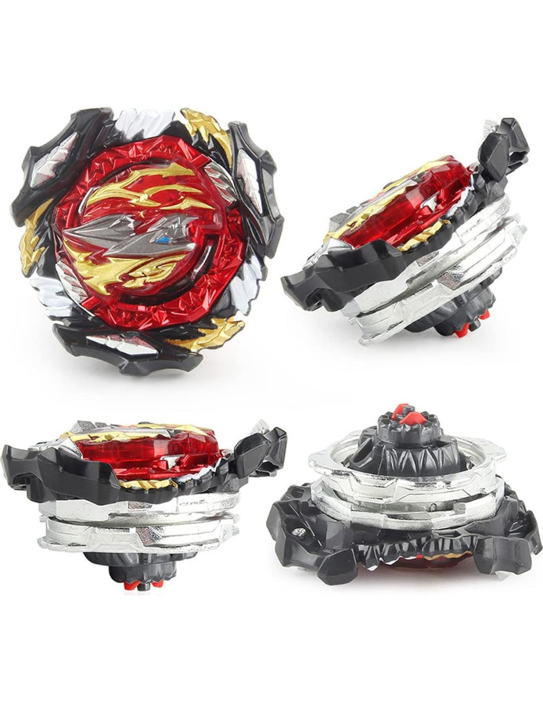 Material: Plástico y Metal. Material ecológico, no dañino para los niños. El paquete incluye: 1x Trompos; 1x Lanzadores; 1x Pegatinas. 100% nuevo y de alta calidad. Es el regalo perfecto de juguetes para niños mayores de 8 años. Consejos: Por favor, no tires de la cuerda con demasiada fuerza, de lo contrario la cuerda se quedará atascada. Compra sin preocupaciones: Por favor, contáctanos si tienes algún problema operativo. Y si nuestro producto no cumple o supera tus expectativas, ofrecemos una garantía de devolución de dinero de 30 días sin complicaciones.