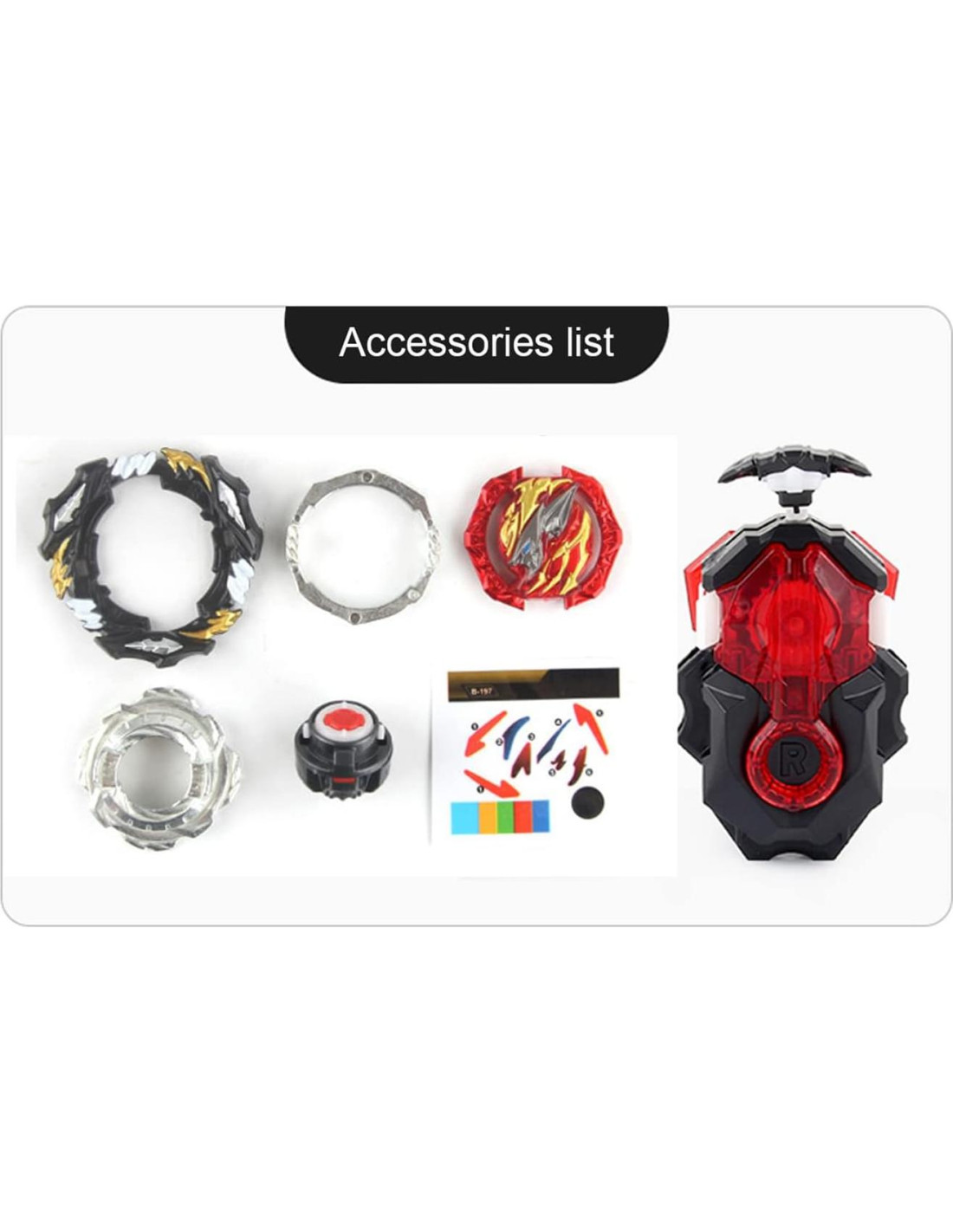 - [El paquete incluye] 1x Trompo; 1x Lanzador; 1x Pegatina.