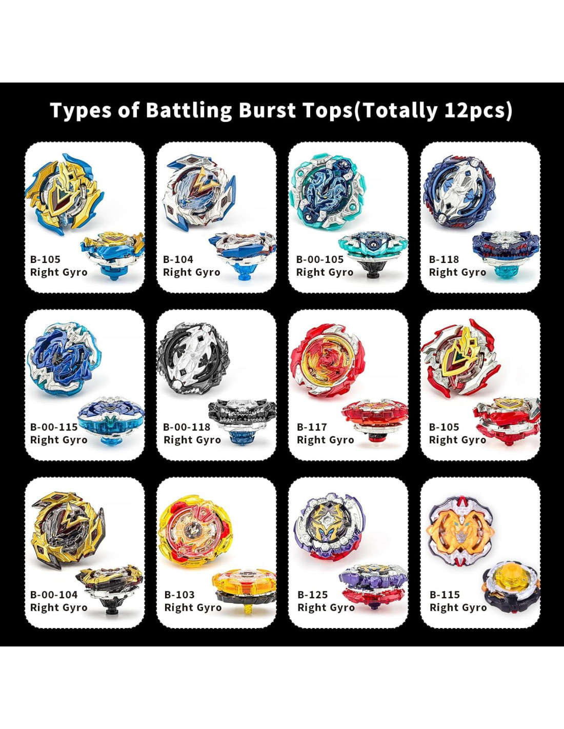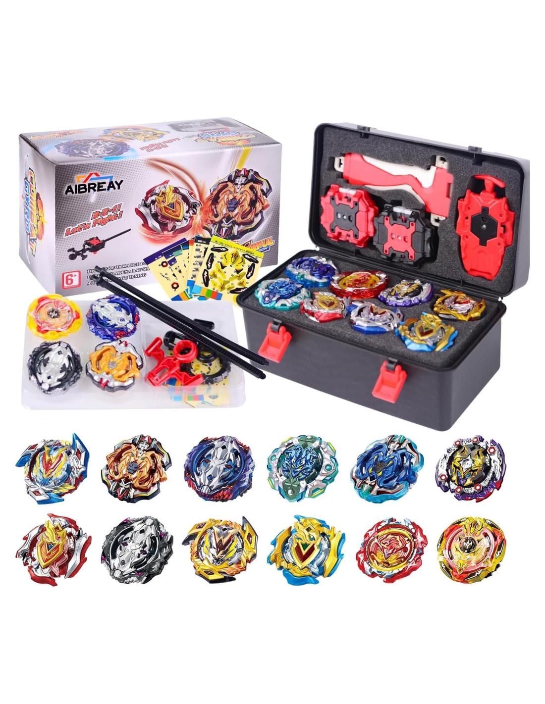 - Conjunto Completo Incluido: El conjunto AIBREAY 15 en 1 incluye 12 Trompos Giratorios, 3 lanzadores, 1 caja de almacenamiento firme, 12 calcomanías. ¡Todo lo que necesitas para un emocionante juego de batalla está aquí!