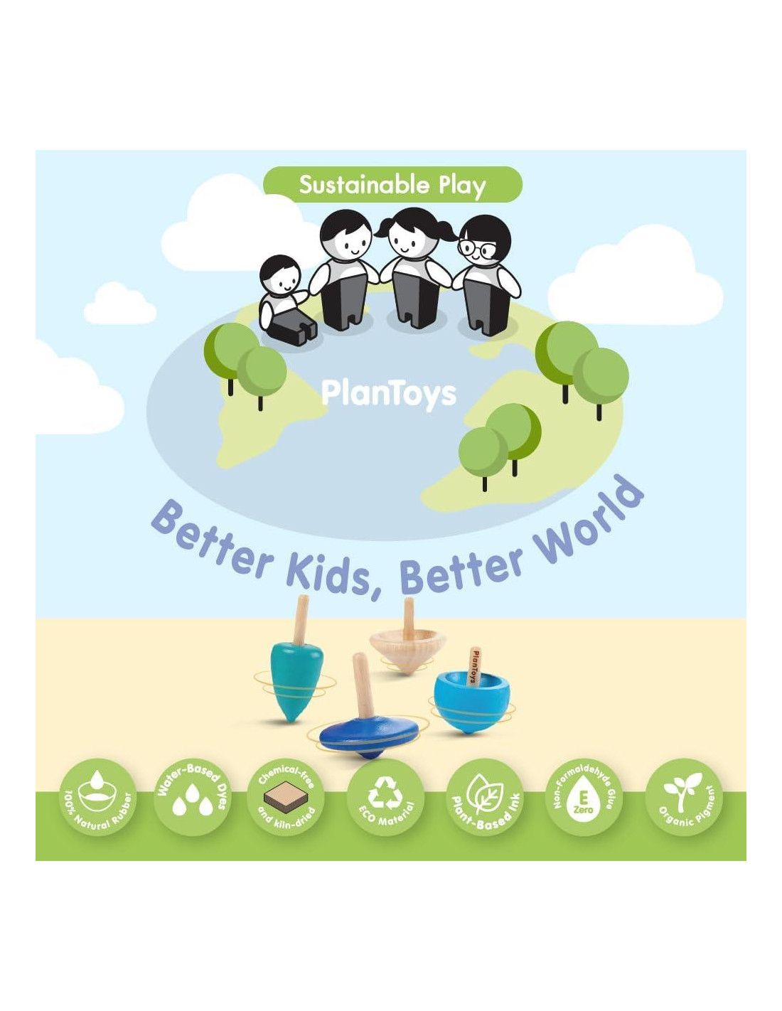 ¡Los trompos han deleitado a niños y adultos por años! Este conjunto de 4 trompos de madera de PlanToys fomenta la destreza y las habilidades motoras finas en los niños. Haz girar los trompos y aprende un poco sobre ciencia mientras se desaceleran y se caen. Uno de los trompos mide 4.06 x 4.06 x 3.81 centímetros. Cada trompo tiene una forma y color diferente. En PlanToys, nuestra misión es proporcionar a los niños juguetes sostenibles y ecológicos que fomenten el aprendizaje temprano, enciendan la imaginación y estimulen los sentidos. Nuestros diseñadores de juguetes crean productos divertidos que fomentan todos los aspectos del desarrollo de un niño, incluyendo habilidades motoras gruesas y finas, habilidades lingüísticas, desarrollo social e interacción, y mucho más. Todos los productos de PlanToys están hechos de árboles de madera de caucho que ya no producen látex. La madera de caucho utilizada está libre de químicos y se seca en horno para asegurar que permanezca libre de químicos. Nuestros juguetes se ensamblan utilizando un pegamento certificado libre de formaldehído E-Zero. Se utilizan pigmentos orgánicos y tintes a base de agua para añadir color. Un juguete de PlanToys es seguro para tu hijo y asegura un entorno sostenible para su futuro. Apto para niños de 3 años en adelante y también para adultos.