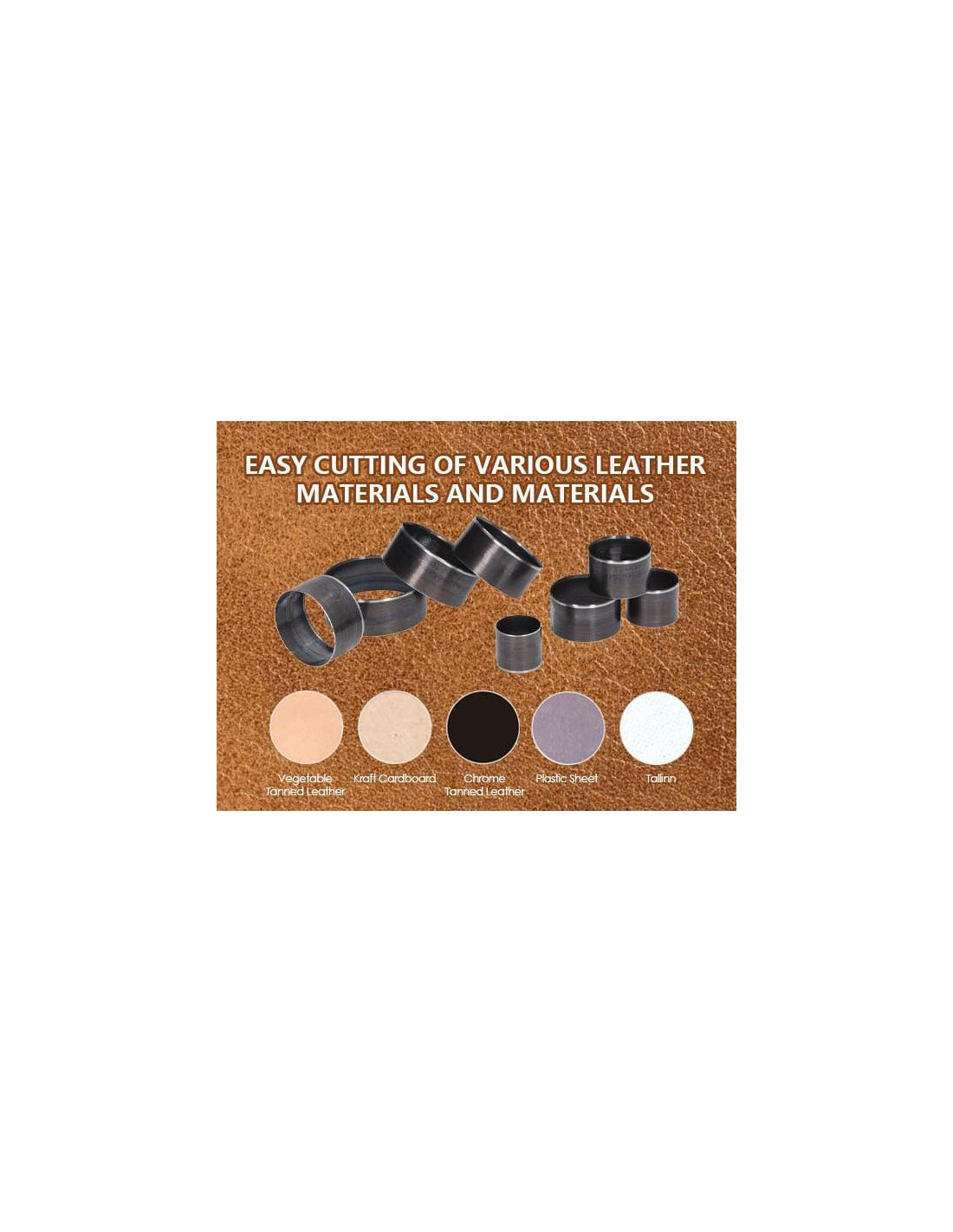 - Troqueles Circulares: Este juego de troqueles de agujeros de cuero incluye 8 troqueles de corte circular que te ayudarán a jugar con materiales circulares al trabajar con cuero