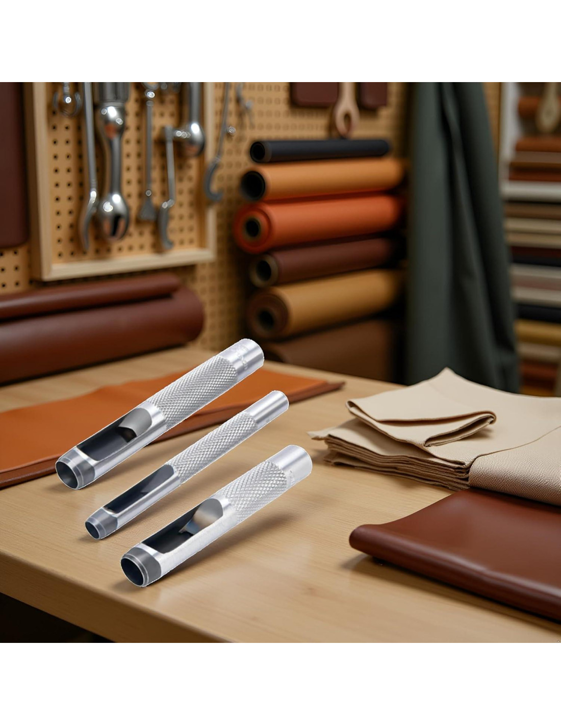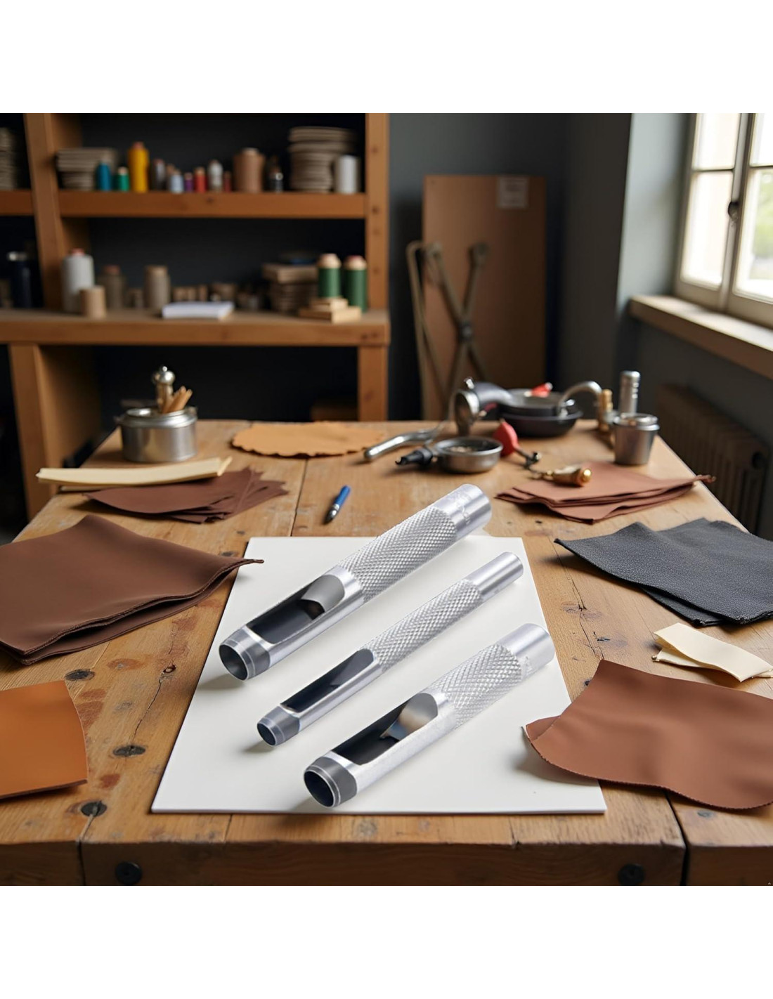 - CONJUNTO VERSÁTIL: Incluye tres troqueles de diferentes tamaños - 1/4 pulgadas (0.64 cm), 3/8 pulgadas (0.95 cm) y 1/2 pulgadas (1.27 cm) para varios proyectos de trabajo en cuero