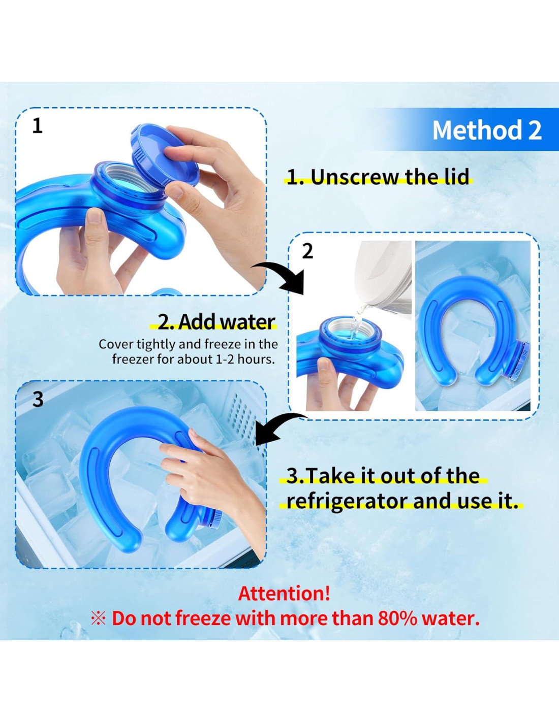 - Diseño Ergonómico El collar enfriador para el cuello está diseñado para ajustarse a la curva del cuello, con la cantidad adecuada de elasticidad para asegurar un buen ajuste para diferentes tamaños de cuello, proporcionando un ajuste cómodo y firme mientras te mantiene fresco.