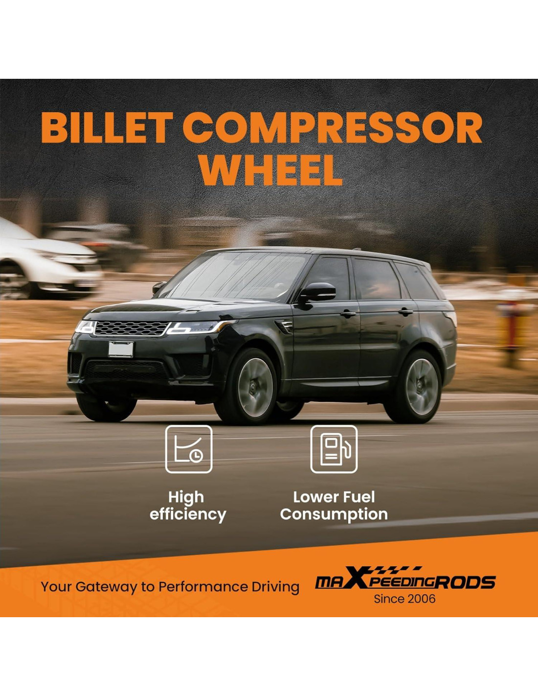 - [Rueda de Compresor Billet Mejorada] Ruedas de compresor de aluminio billet forjado completamente mecanizadas, con un diseño aerodinámico que mejora el flujo de aire y la eficiencia de compresión. Asegura durabilidad, estabilidad y una mejor respuesta de impulso en diversas condiciones de conducción