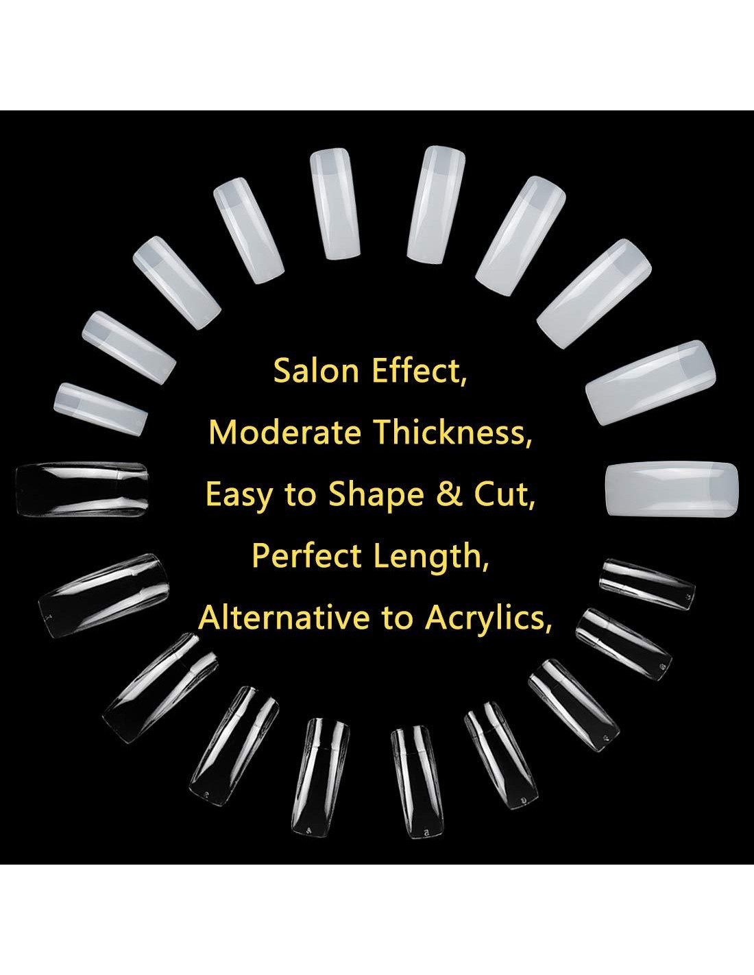 - Kit de Consejos de Uñas 3 en 1: El kit de consejos de uñas acrílicas incluye 500pcs consejos de uñas transparentes, 500pcs consejos de uñas naturales, 2 pcs limas de uñas, 1 pcs cortador de uñas, que satisfacen todas sus necesidades para arte de uñas DIY o salón de uñas en casa. Y los consejos de uñas cuadrados son fáciles de dar forma, limar plano, pintar y usar con esmalte en gel, polvo acrílico para uñas, polvo para inmersión, por lo que puedes hacer más diseños de consejos de uñas.