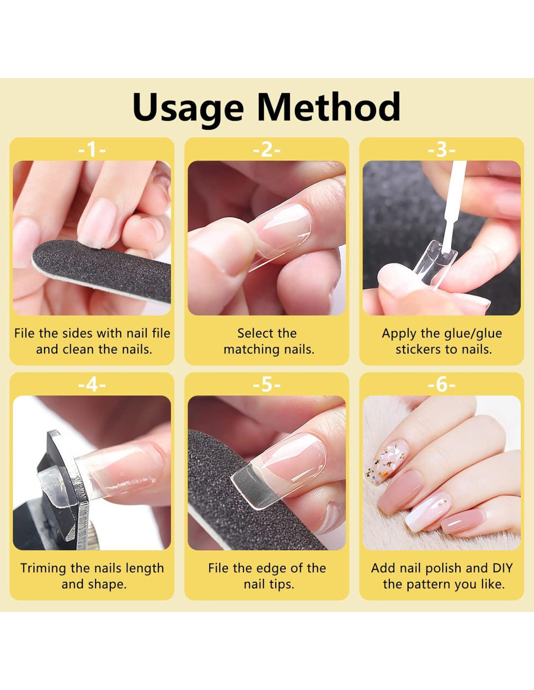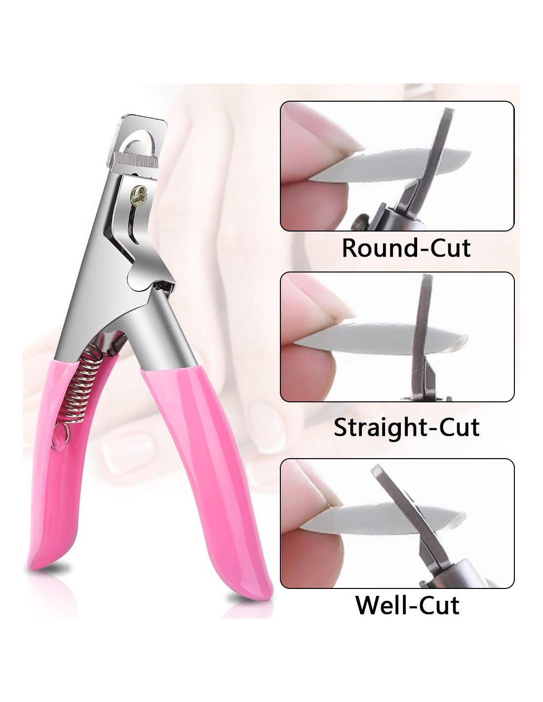 Siempre nos hemos comprometido a proporcionar a nuestros clientes productos de alta calidad y un servicio satisfactorio. Cada producto es cuidadosamente seleccionado, no solo es práctico sino que la calidad es impecable. Si no está satisfecho con nuestros productos o tiene alguna pregunta, no dude en encontrarnos. El cortador de puntas para uñas acrílicas tiene una hoja en forma de U, se puede usar para cortar bien, cortar recto, cortar redondo. Solo seis pasos para hacer tus uñas.