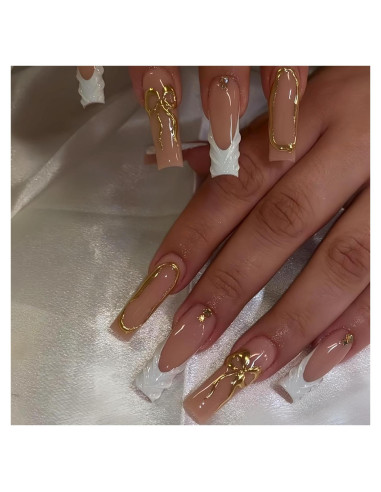 - Saludables y Duraderas: Nuestras uñas postizas con lazo están hechas de material ABS saludable, sin olor irritante, mayor brillo, no son fáciles de romper. Las uñas postizas de acrílico no dañarán el cuerpo humano ni las uñas naturales al ser retiradas, y se pueden usar con confianza. Las personas con uñas sensibles no son la excepción