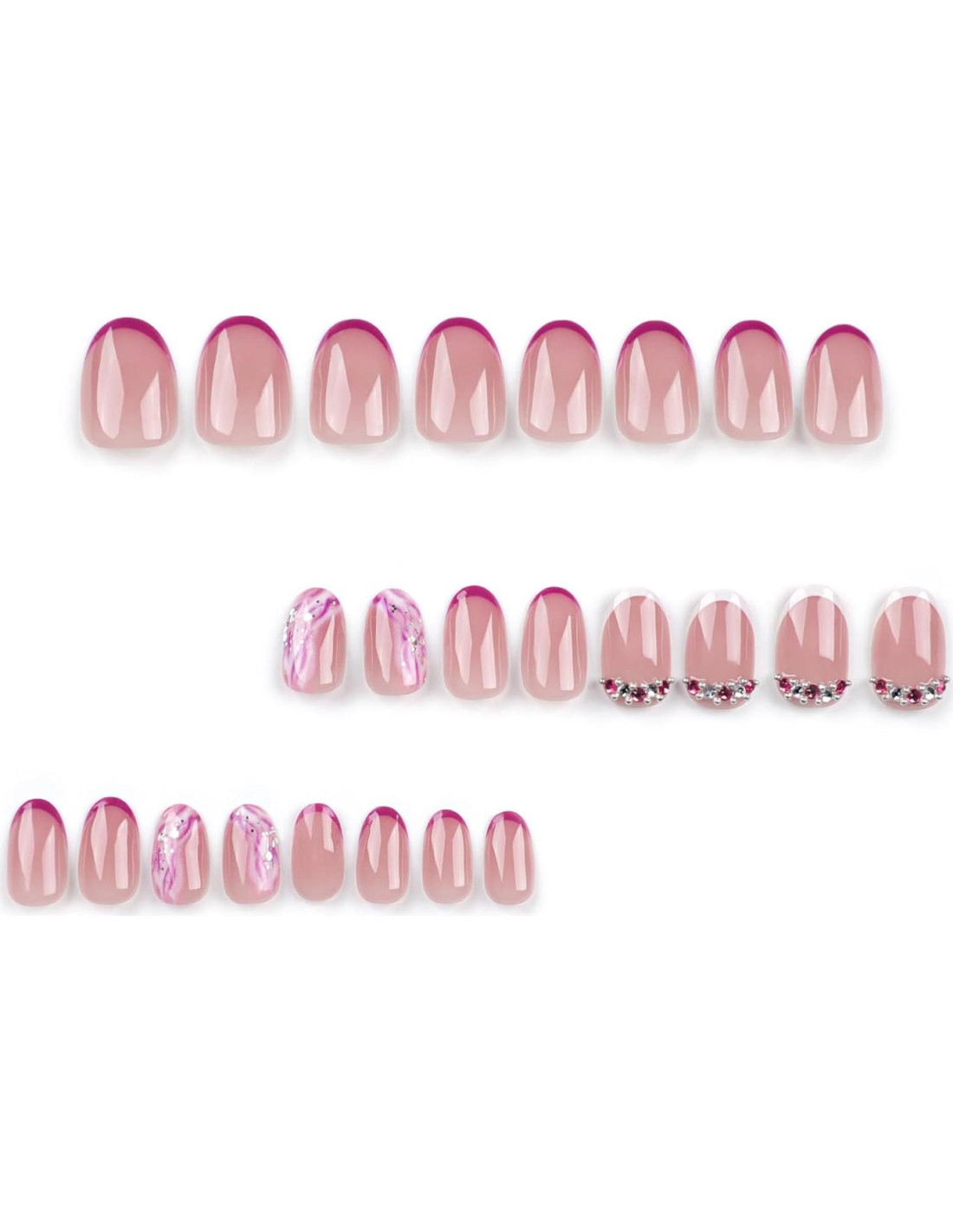 Paquete que incluye 24 uñas falsas + 24 piezas de gelatina + 1 lima de uñas + 1 palito removedor de uñas Cómo usar: 1. Elige una uña falsa del tamaño adecuado para cada dedo. 2. Lija suavemente las uñas y las uñas falsas con nuestra lima de uñas de cortesía para obtener un mejor ajuste. 3. Limpia tus uñas con algodón con alcohol y espera a que las uñas se sequen antes de proceder al siguiente paso. 4. Coloca una pegatina en la uña, pega la uña falsa desde la raíz de la uña hasta la parte delantera de la uña, y luego presiónala durante unos segundos. 5. Puedes usar pegatinas y accesorios de uñas u otros accesorios para unir las uñas falsas y crear tu estilo favorito. Pasos para la remoción: 1. Remoja tus uñas en agua tibia durante dos minutos. 2. Inserta un pequeño palito de madera en la uña y retírala. 3. Puedes conservar tus uñas y reutilizarlas si lo deseas. 4. Proporcionamos gelatina de alta calidad (duradera por más de una semana), que no dañará las uñas naturales, y puede hacer que las uñas falsas se reutilicen.