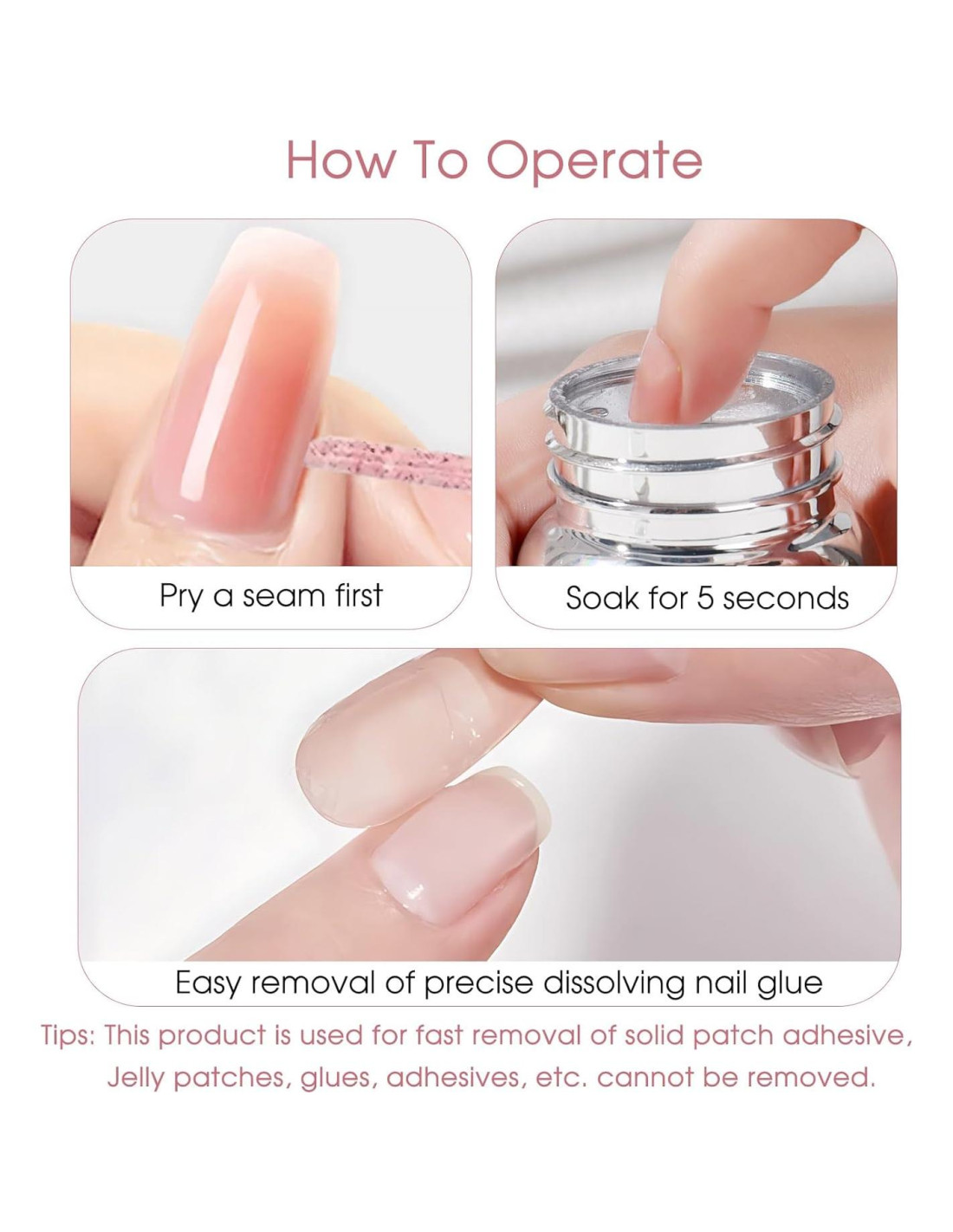 - AHORRO DE TIEMPO: Disuelve eficientemente el adhesivo para uñas, haciendo que la eliminación de uñas postizas sea rápida y menos dañina para las uñas naturales