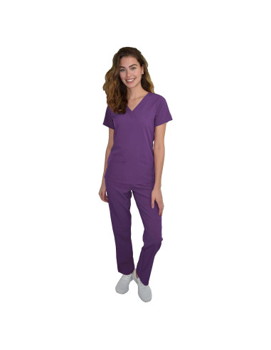 - CARACTERÍSTICAS ÚTILES: Ideal para el campo médico, el top de cuello en V ofrece un lazo elástico para tu identificación o accesorio y ventilaciones laterales. El pantalón de pierna recta cuenta con una cinturilla completamente elástica y un cierre de cordón que se mantiene seguro en la cintura.