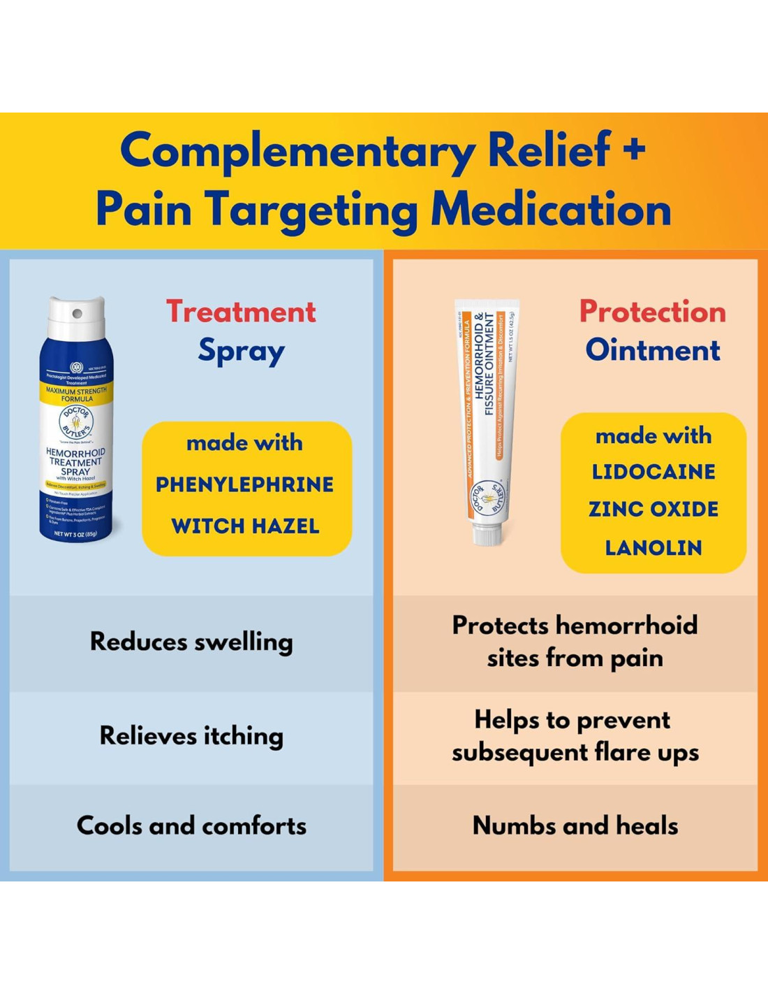 - DEJA EL DOLOR ATRÁS: El kit de hemorroides de Dr. Butler, elaborado por un Proctólogo Certificado por la Junta, utiliza ingredientes premium para un alivio efectivo de hemorroidas y tratamiento de fisuras. Use los productos juntos para reducir rápidamente la hinchazón y proteger los sitios sensibles de hemorroidas durante la curación.