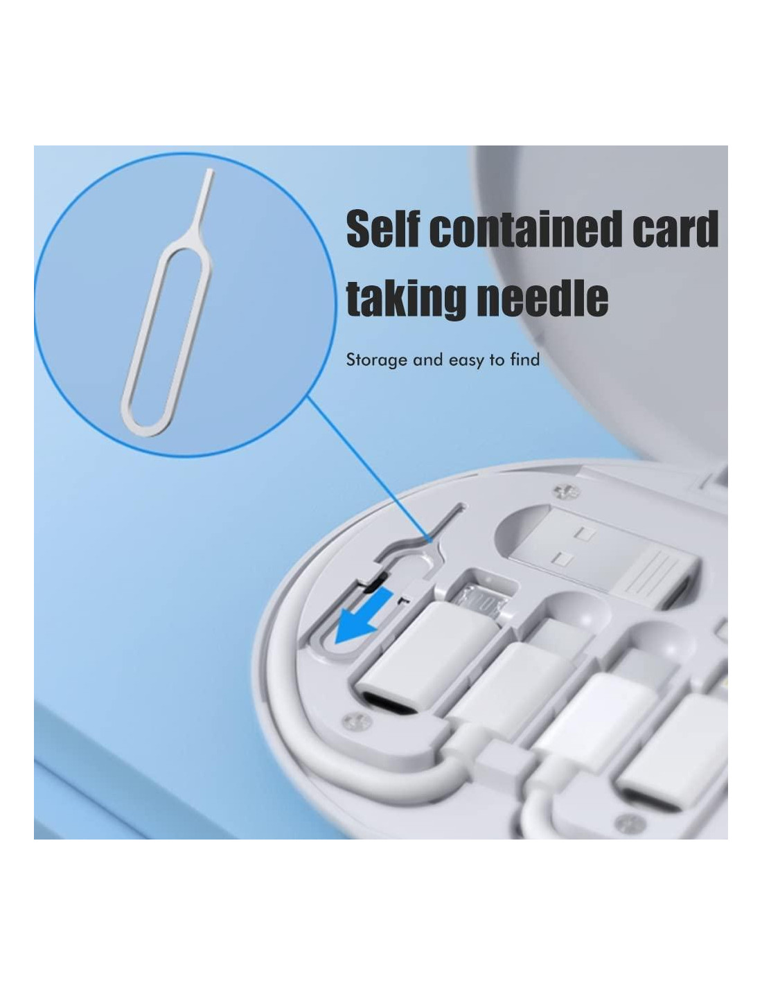 El paquete incluye: 1 x adaptador de caja de almacenamiento de cable de datos multifuncional (compatible con Android, flash, USB, Type-C 4 interfaces diferentes, con una aguja de expulsión de bandeja de tarjeta, soporte para teléfono móvil incorporado). Material: ABS + Metal Color: Azul Tamaño: 8.2 x 8.2 x 1 cm Nota: Debido a la medición manual, el tamaño y el peso pueden tener un cierto error. Debido a la diferencia entre monitores, puede haber una ligera diferencia de color.