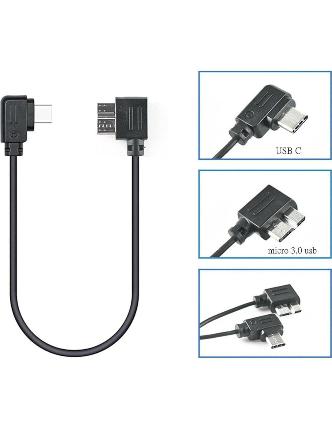 Cable de control de cámara USB C a Micro 3.0 usb Estabilizador aplicable: DJI Ronin-rsc2,rs2,rs3,rs3 mini,rs3 pro,rs4,rs4 pro Modelos de marca de cámara que soportan control: A)para canon: EOS 5D Mark IV,5RS R,1DX Mark II B)para nikon: d850,d5,d6 Soporte para controlar funciones de la cámara: tomar fotos, iniciar/detener grabación, activar enfoque automático, control electrónico con enfoque, se pueden ajustar parámetros (apertura, obturador, ISO), configuración de transmisión de imagen Ronin Nota 1. Debido al sistema de la cámara, si necesita tomar fotos, cambie el modo de disparo de la cámara a tomar fotos; Cuando se necesite video, cambie el modo de disparo de la cámara a video. 2. Debido a la diferencia en la lógica de control de lentes, el lente necesita seleccionar AF (enfoque automático) al usar control eléctrico para enfocar, el cuerpo necesita desactivar la función AF Servo. 3. Algunas cámaras Canon no muestran la pantalla de la cámara al usar HDMI (como conectar el monitor o transmisión de imagen hawkeye). Si desea mapear la pantalla de la cámara, necesita configurar la pantalla HDMI de la cámara a cámara + pantalla (solo soportado por algunas cámaras).