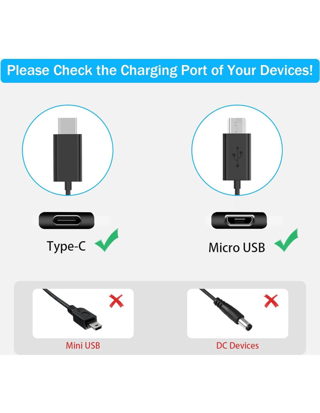 - [Especificaciones:] Salida: 5V 2A Entrada: 100-240V 50-60Hz. Longitud del cable: 3.94 pies (1.2 m). Carga rápida y segura: Soporta un máximo de 5 amperios de corriente. Hecho con cables de baja impedancia de alta calidad de 23 AWG, la velocidad de carga del cable es más rápida que la de un cable USB ordinario.