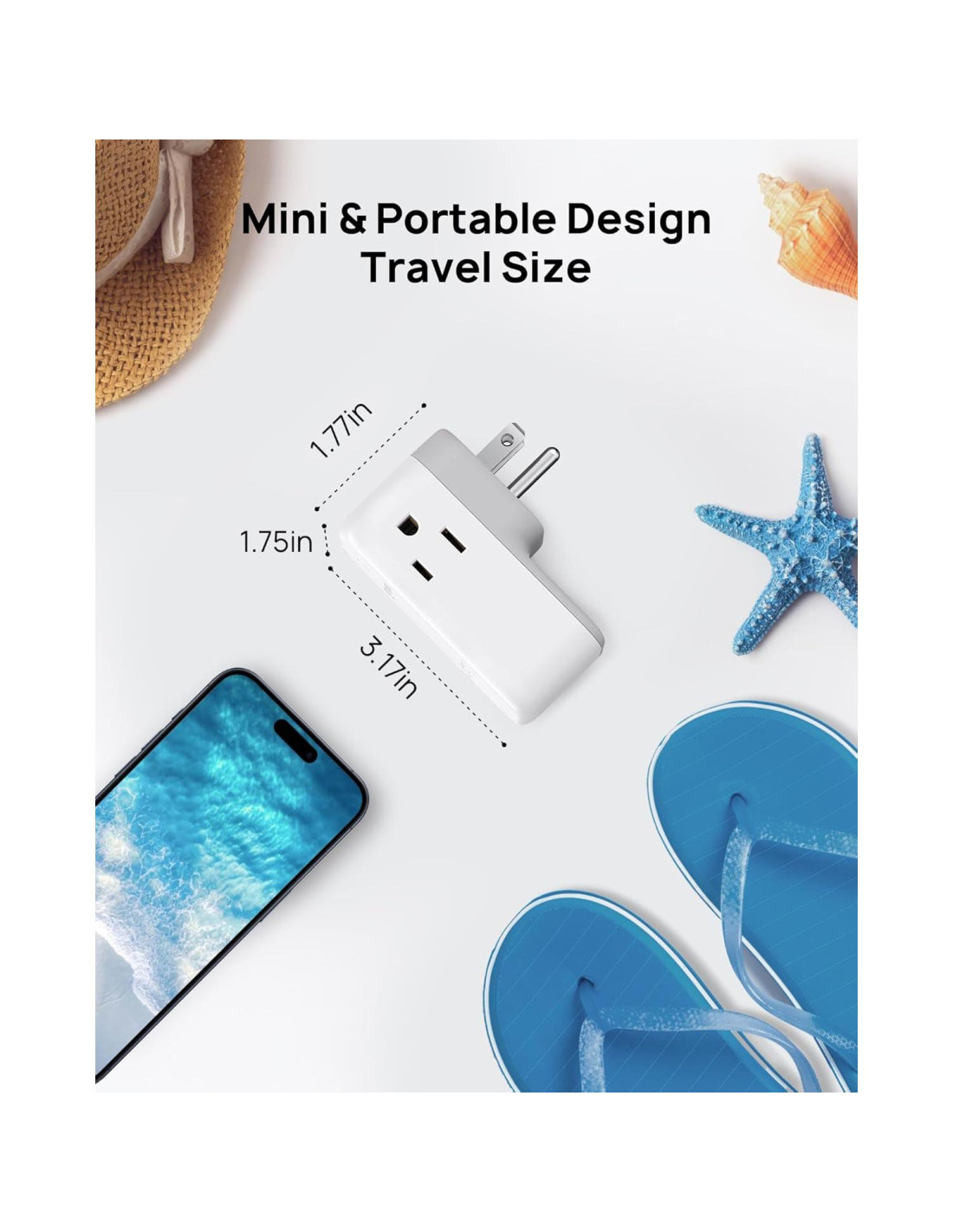 - Características especiales: 2 USB A y 2 USB C, 3 Salidas AC, Enchufe Rotatorio 360, Compacto y Portátil, Aprobado para Cruceros