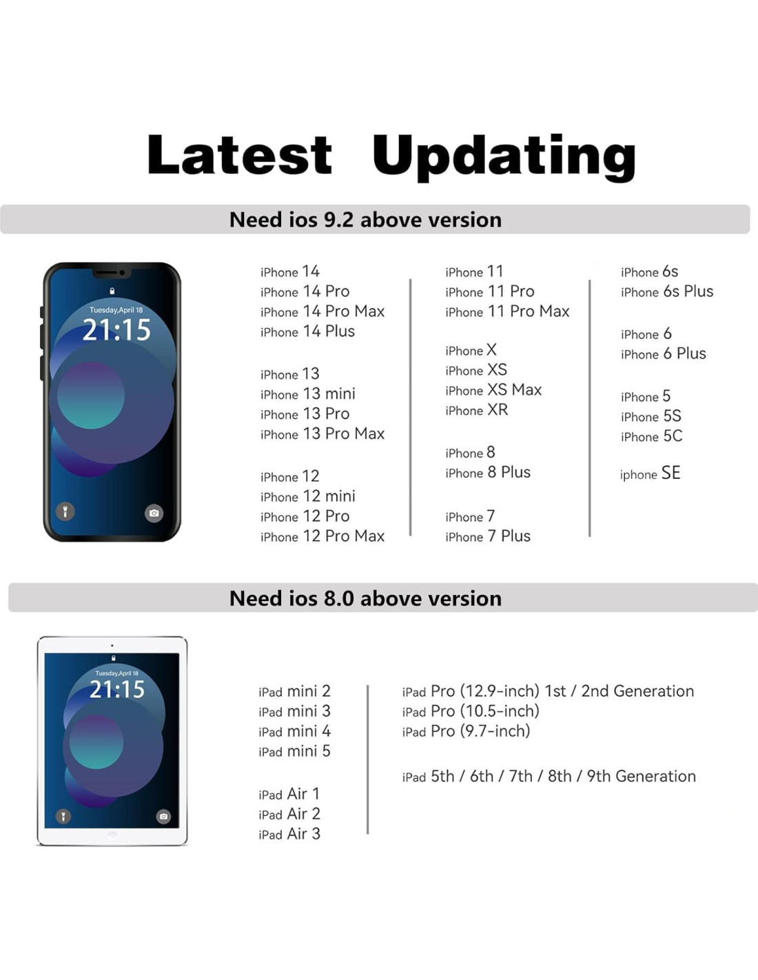 - [Amplia compatibilidad] : El adaptador de cámara USB para iPhone admite formatos de foto estándar (incluidos JPER y RAW) y formatos de video SD/HD (incluidos H.264 y MPEG-4). Compatible con iPhone 14/14 Plus/14 Pro/14 Pro Max/13/13 mini/13 Pro/13 Pro Max/12/12 mini/12 Pro/12 Pro Max/11/11 Pro/X/XS/XS Max/XR/8/8 Plus/7/7 Plus/6s/6s Plus/6/6 Plus/SE y iPad Air/Mini/Pro.